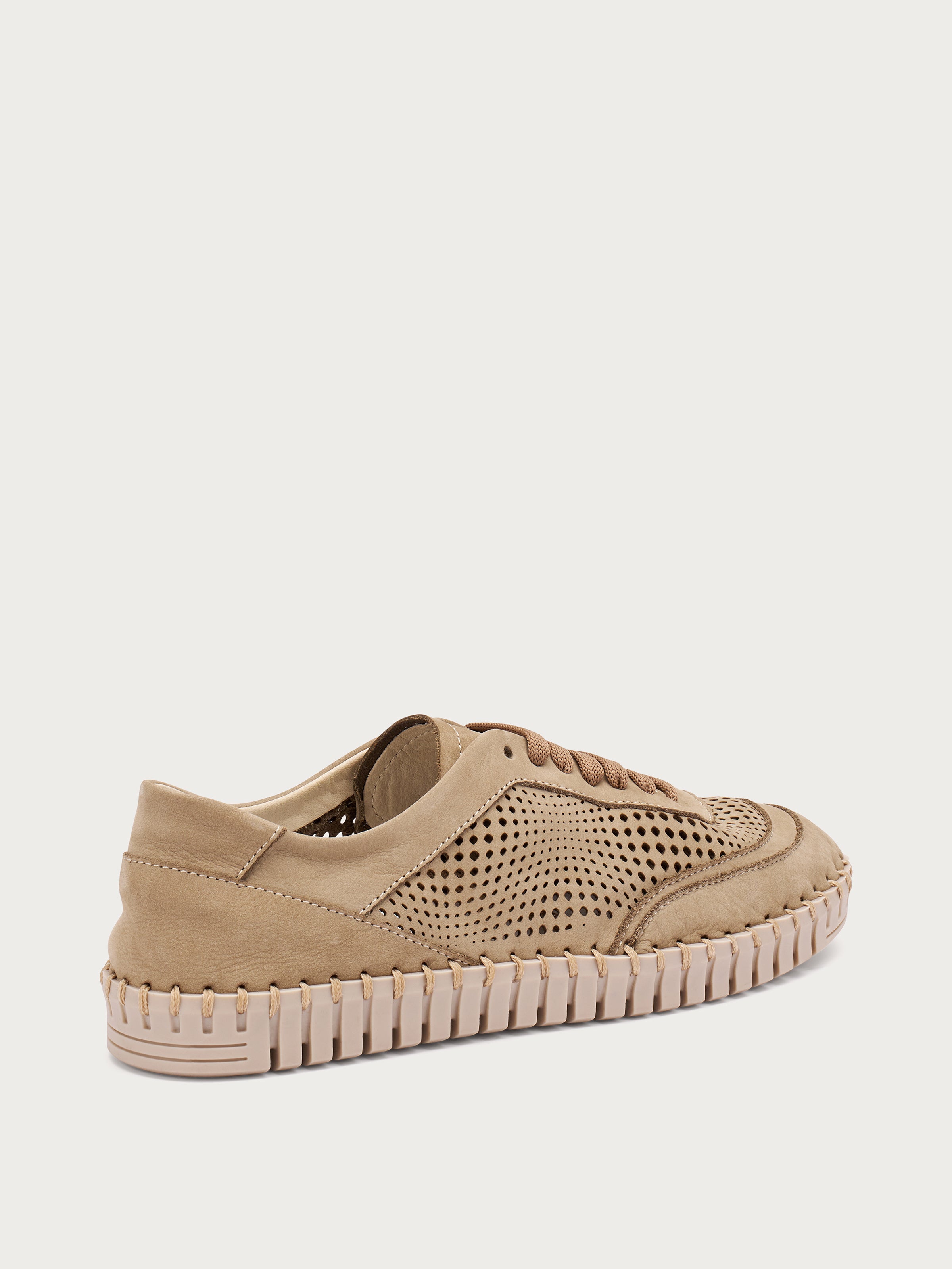 Sneaker aus gelasertem Nubukleder - Sand | FRAU