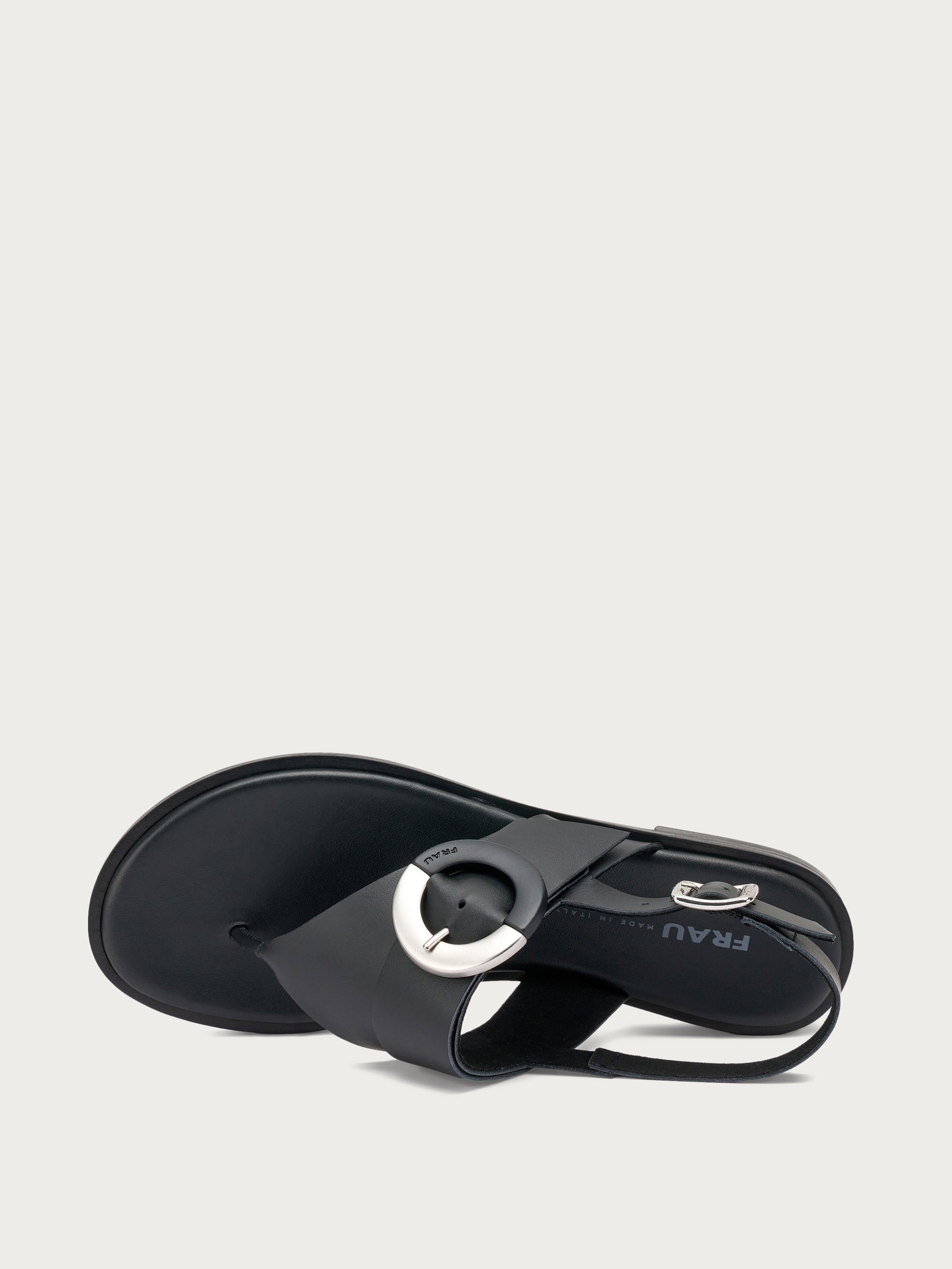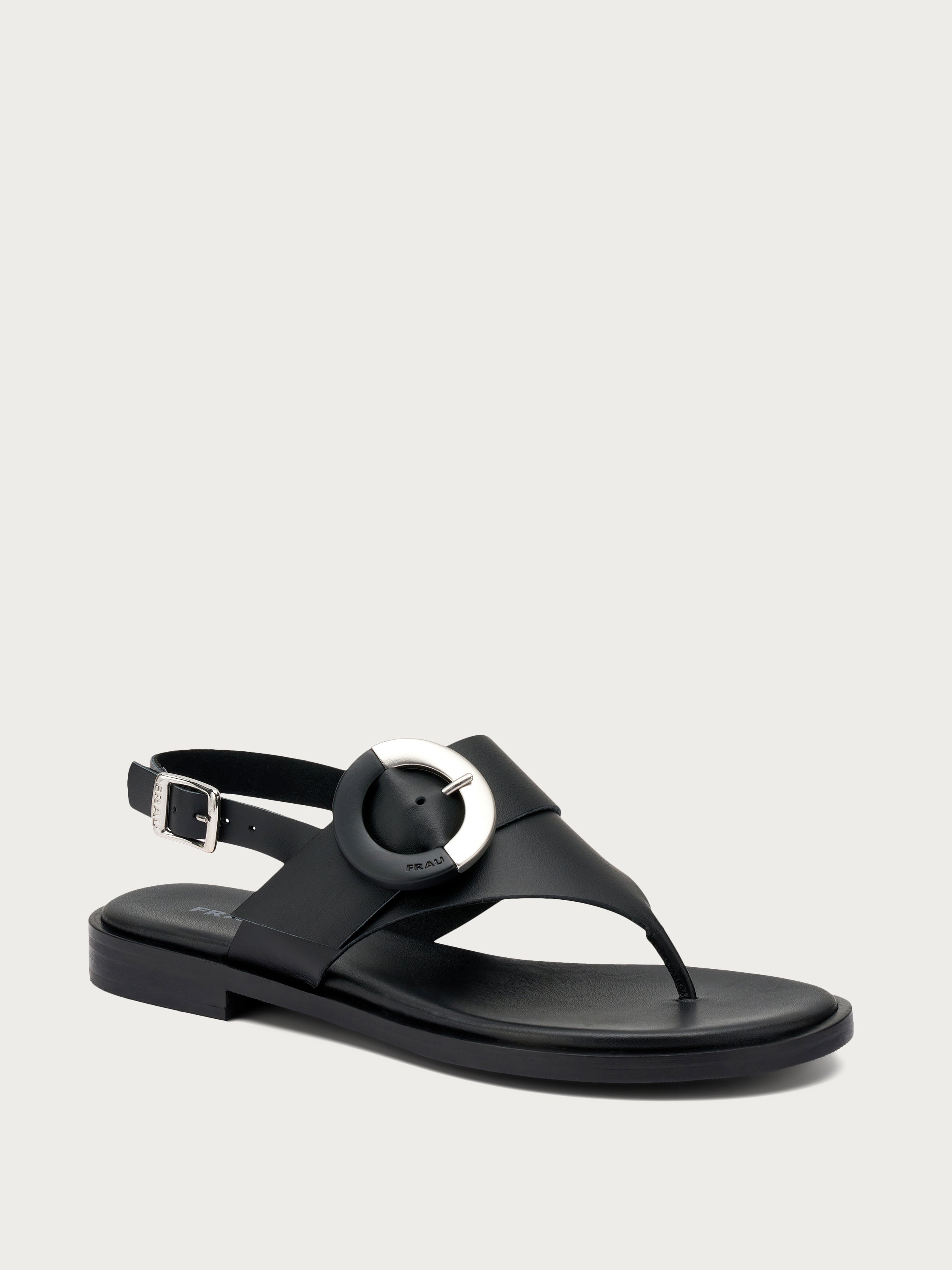 Zehenstegsandale aus Leder mit runder Schnalle, essenziell, elegant, immer aktuell, zum Tragen Sommer für Sommer. Komfort und Weichheit begleiten Sie auf Schritt und Tritt