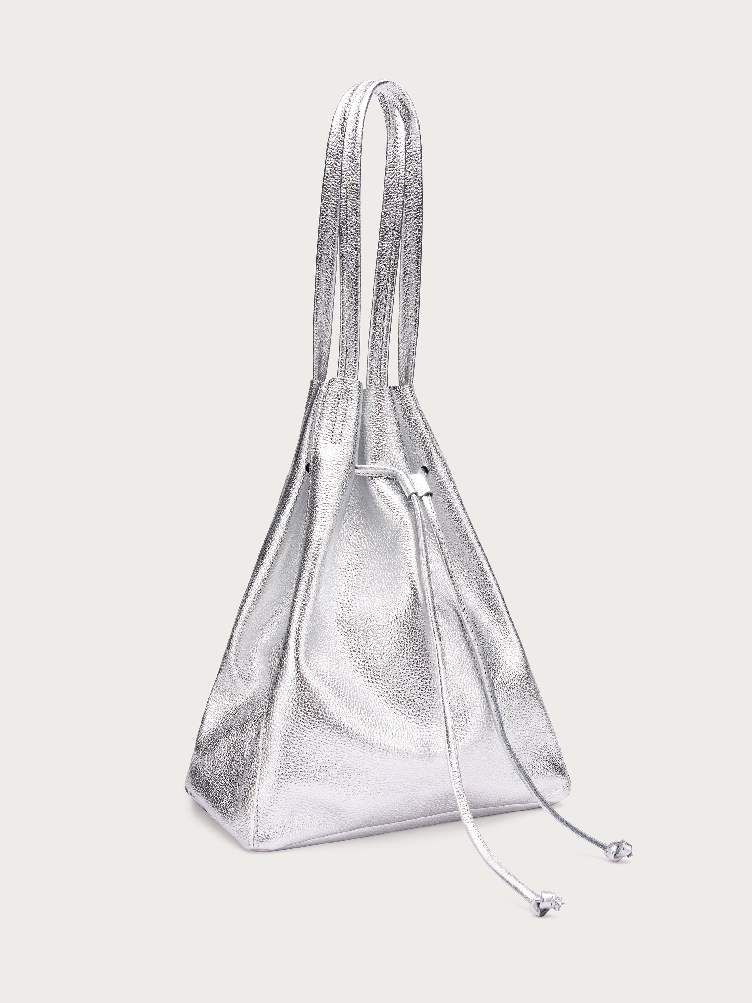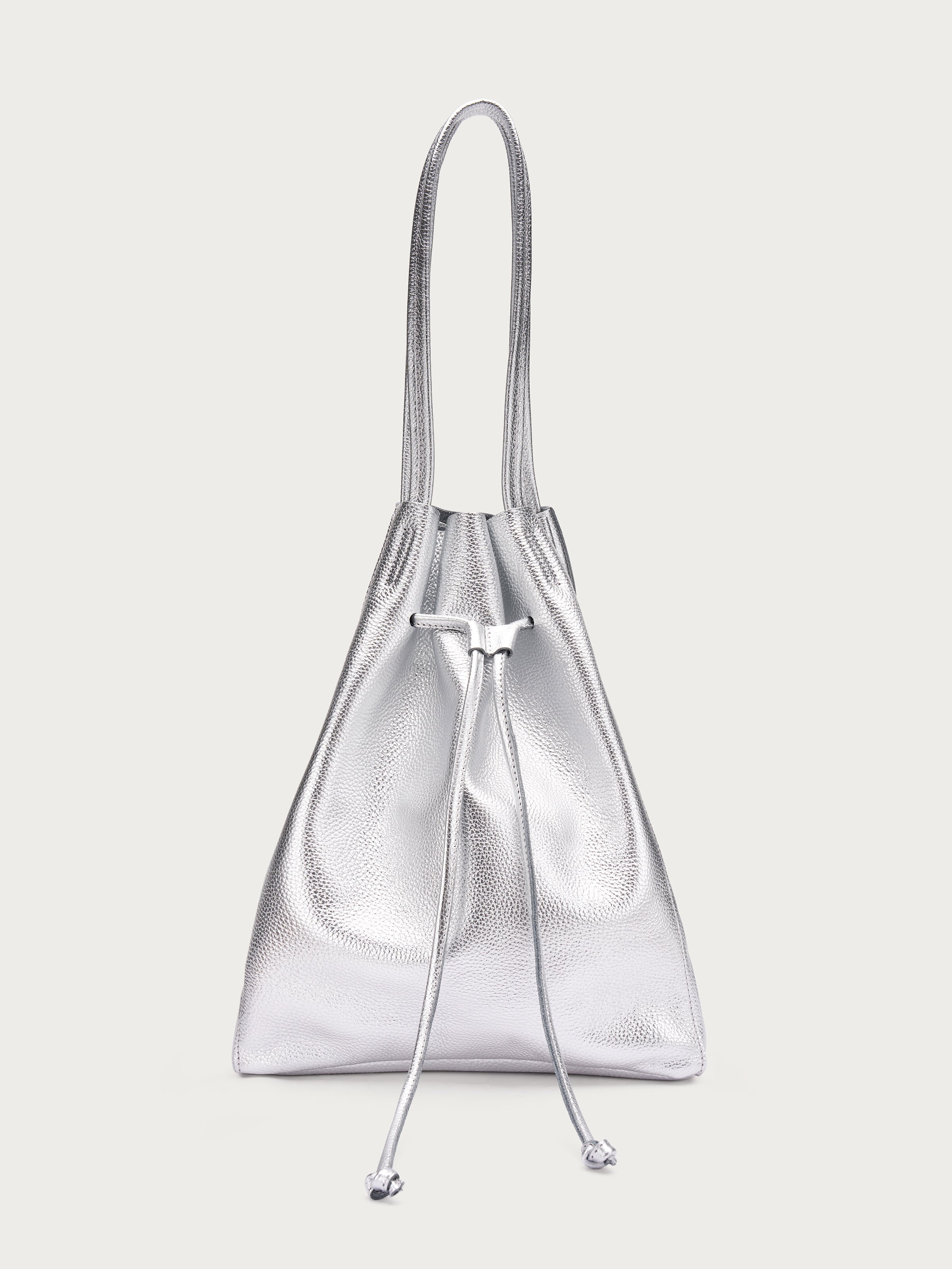 The bucket bag is especially appealing when chosen in bright and distinctive versions. This compact, laminated leather variant will add a touch of shimmer to everyday outfits and vibrancy to more classic and evening outfits.
