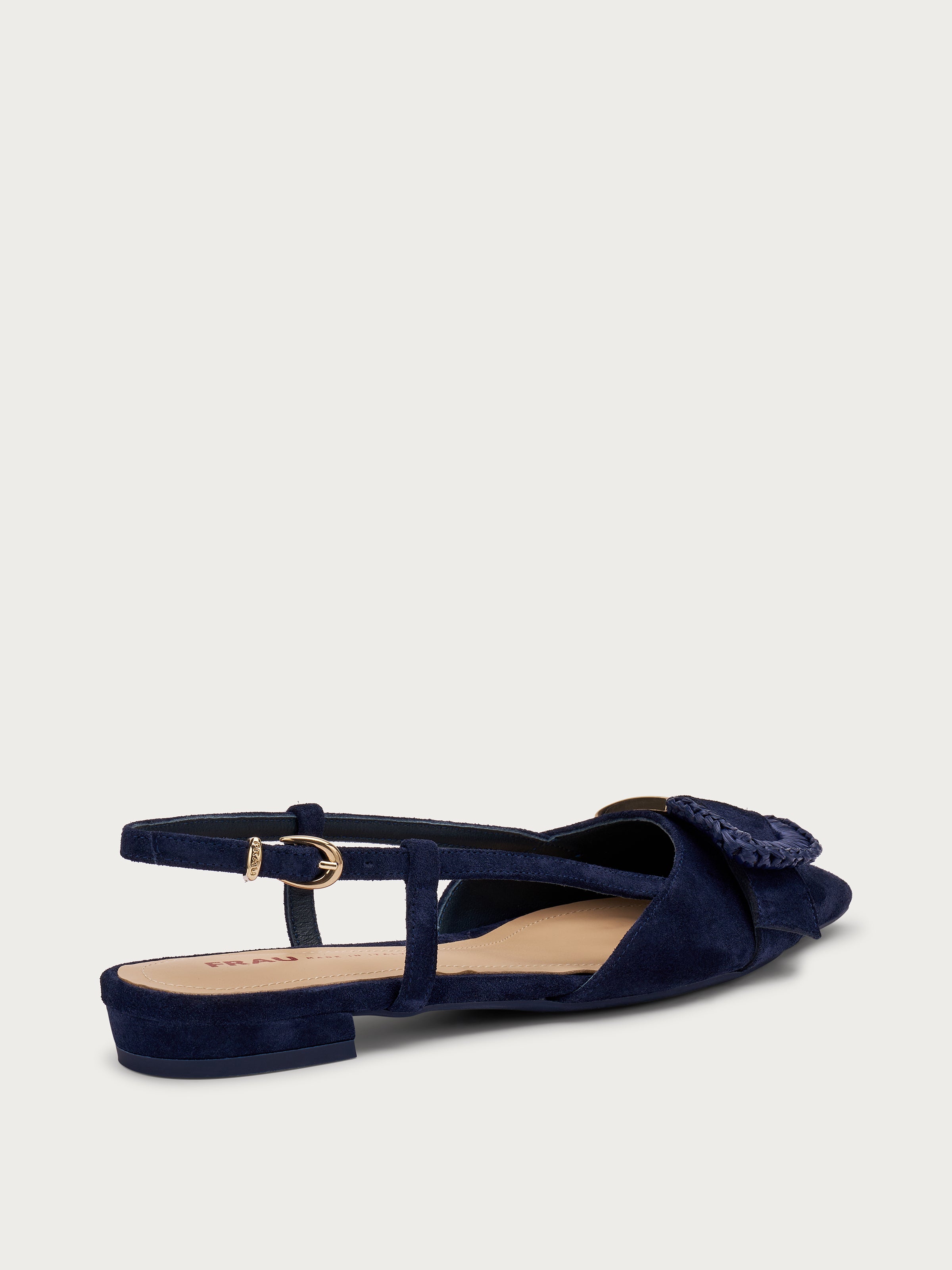 Suede slingbacks with raffia-covered buckle - Navy Blue | FRAU