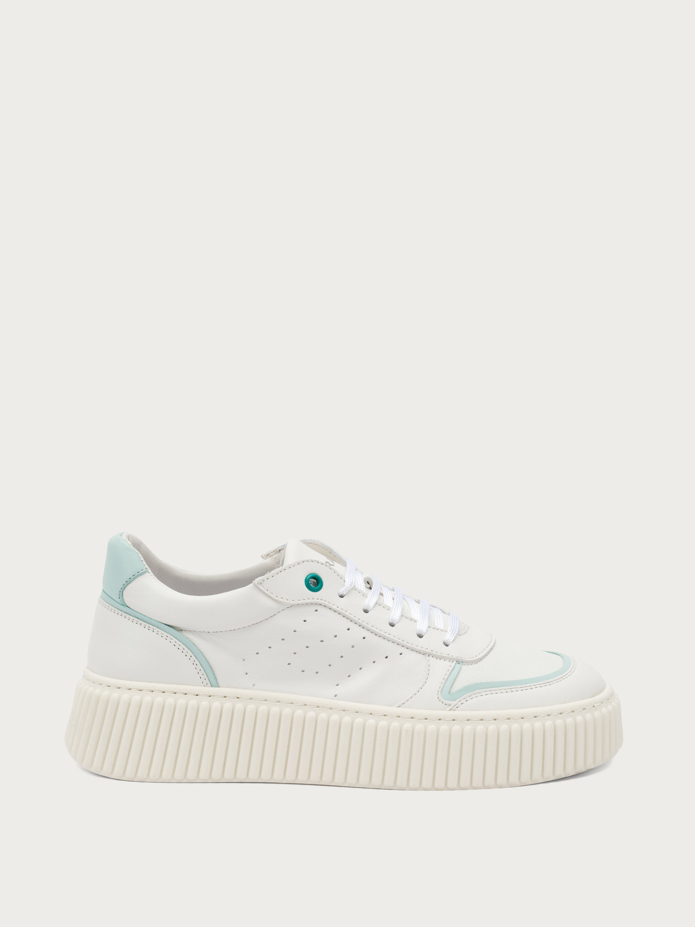 • Leather upper with perforations on the side and pastel-coloured inserts on the apron toe and heel counter