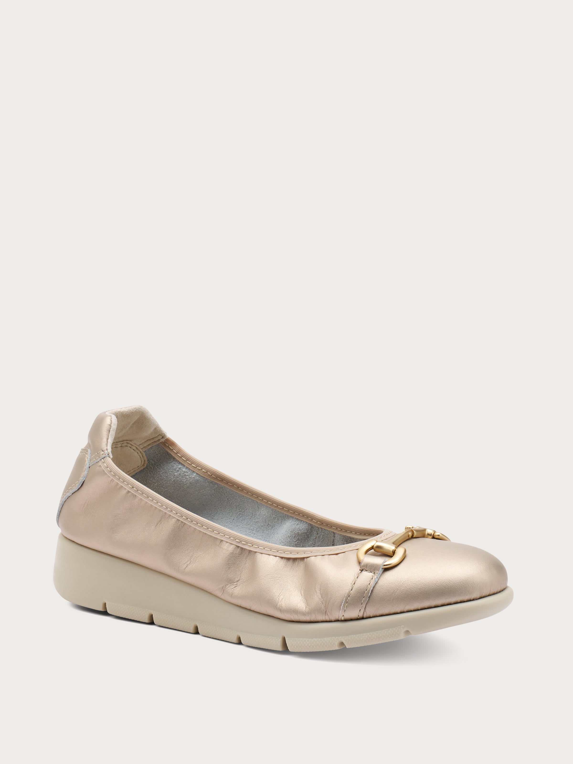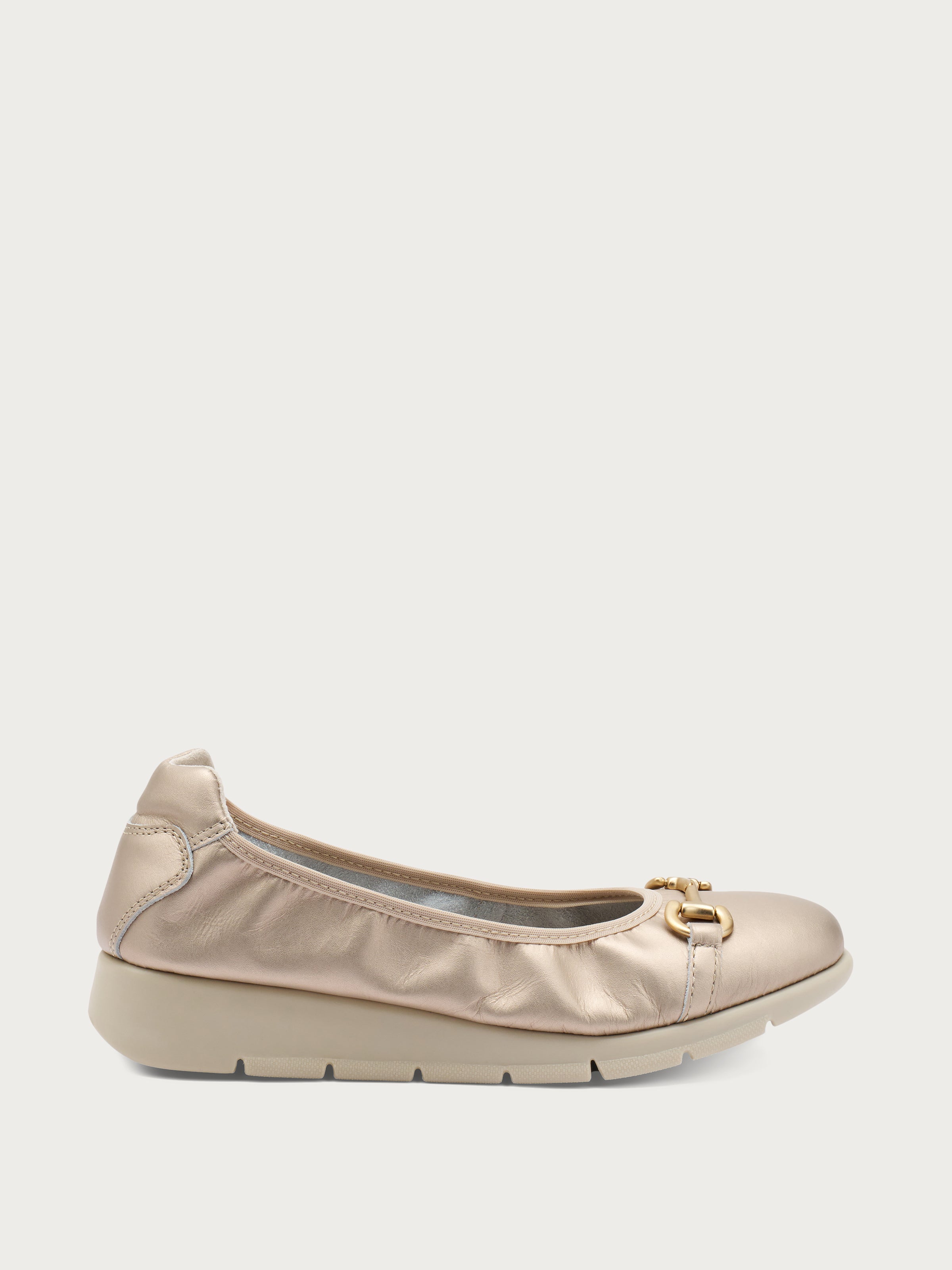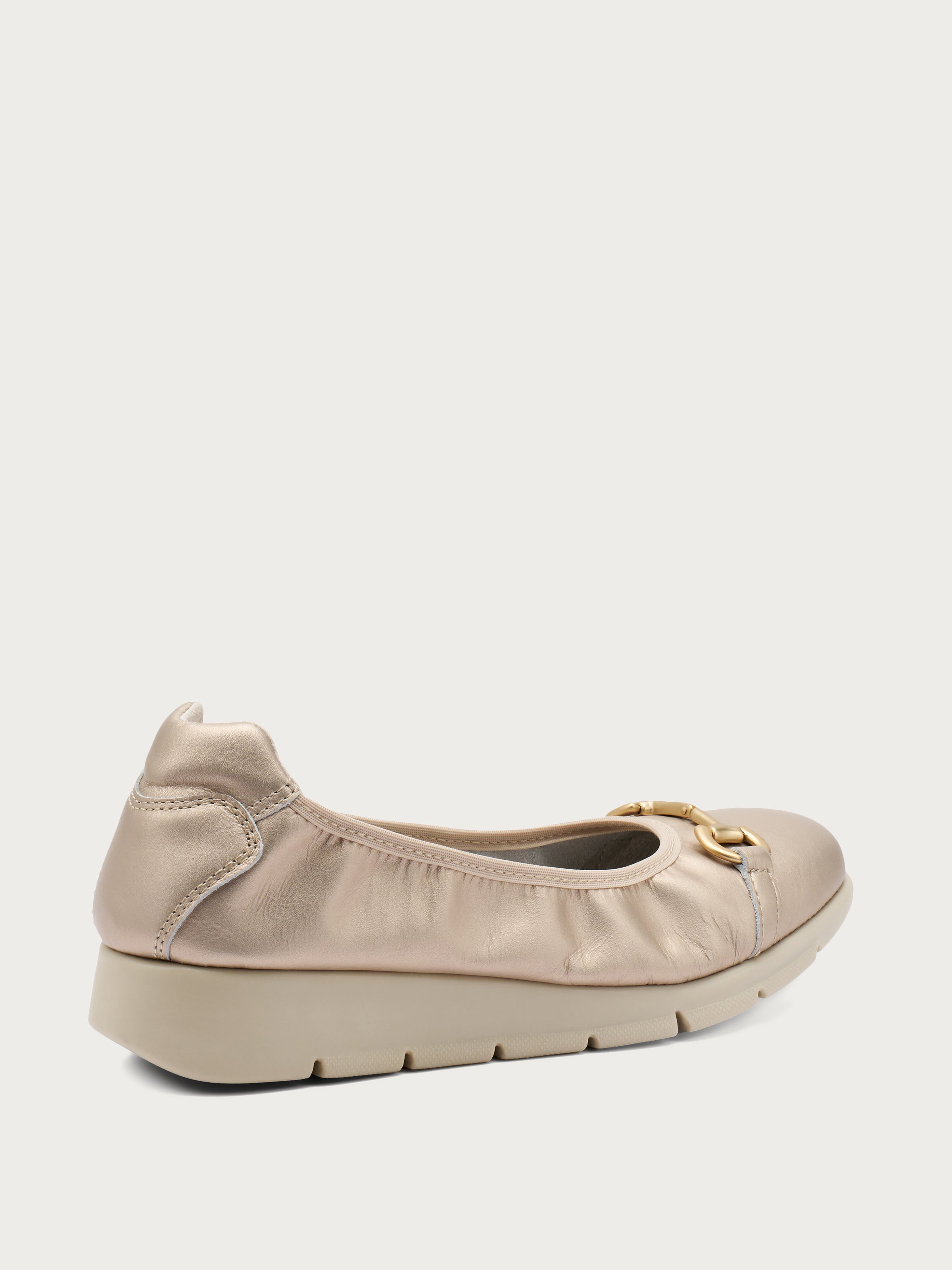 Soft laminated leather ballet flats with fine clasp detail, which are perfect for people who do not want to sacrifice a touch of elegance but are looking for maximum comfort.