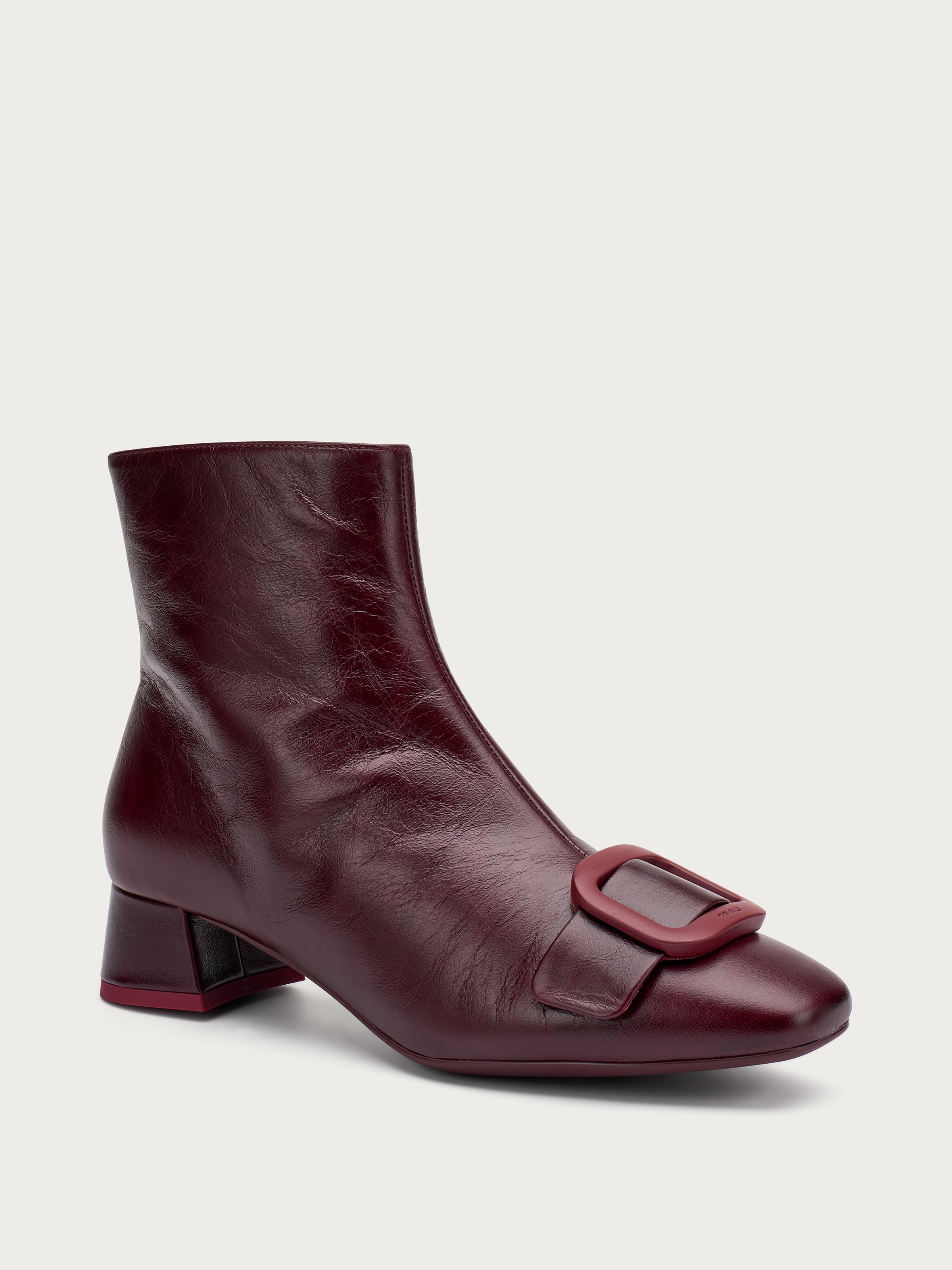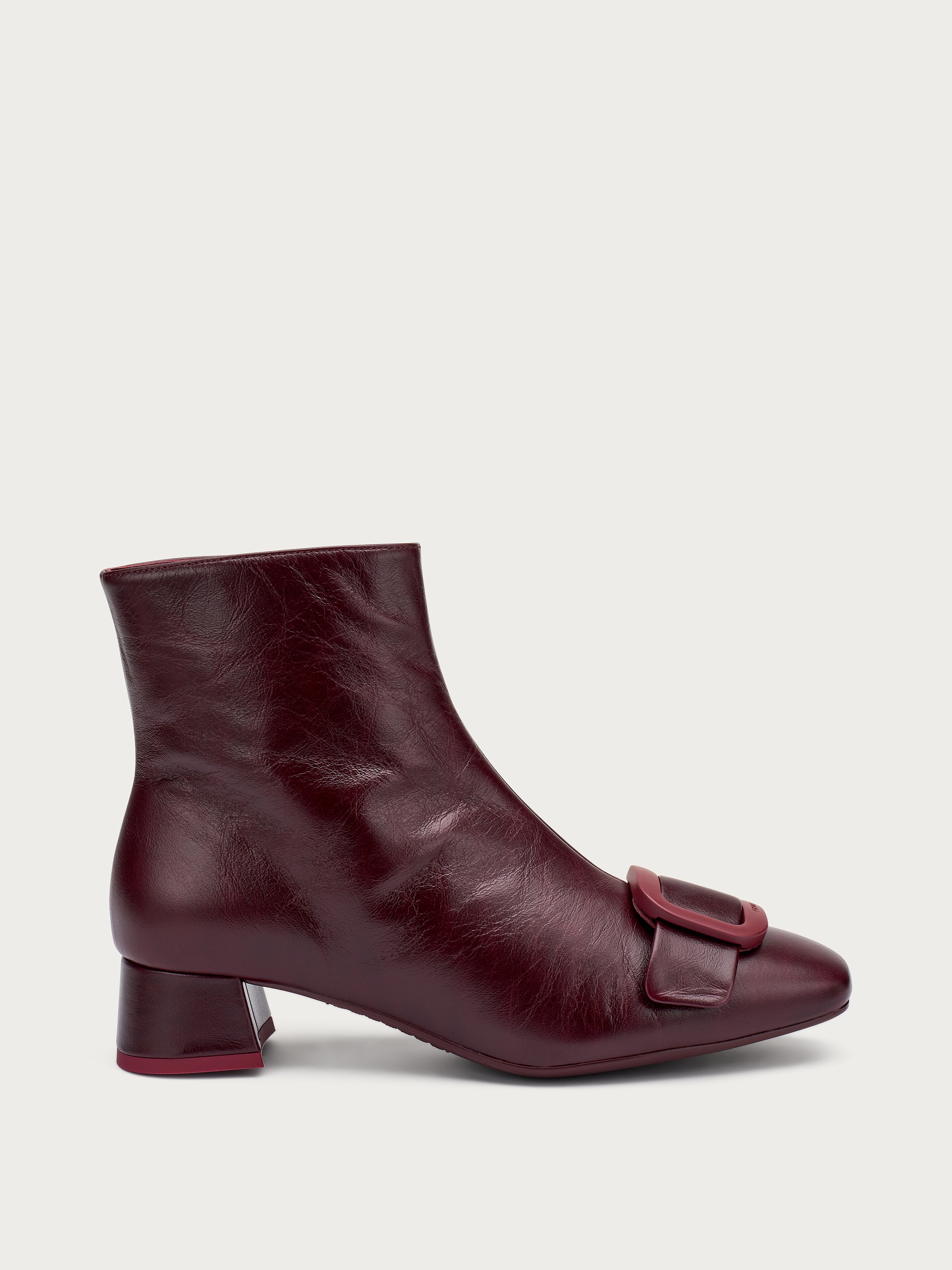 Maximum versatility in changing outfits, very comfortable, both day and night, these ankle boots with low heels and tonal buckle are an ace in the sleeve for everyday wear