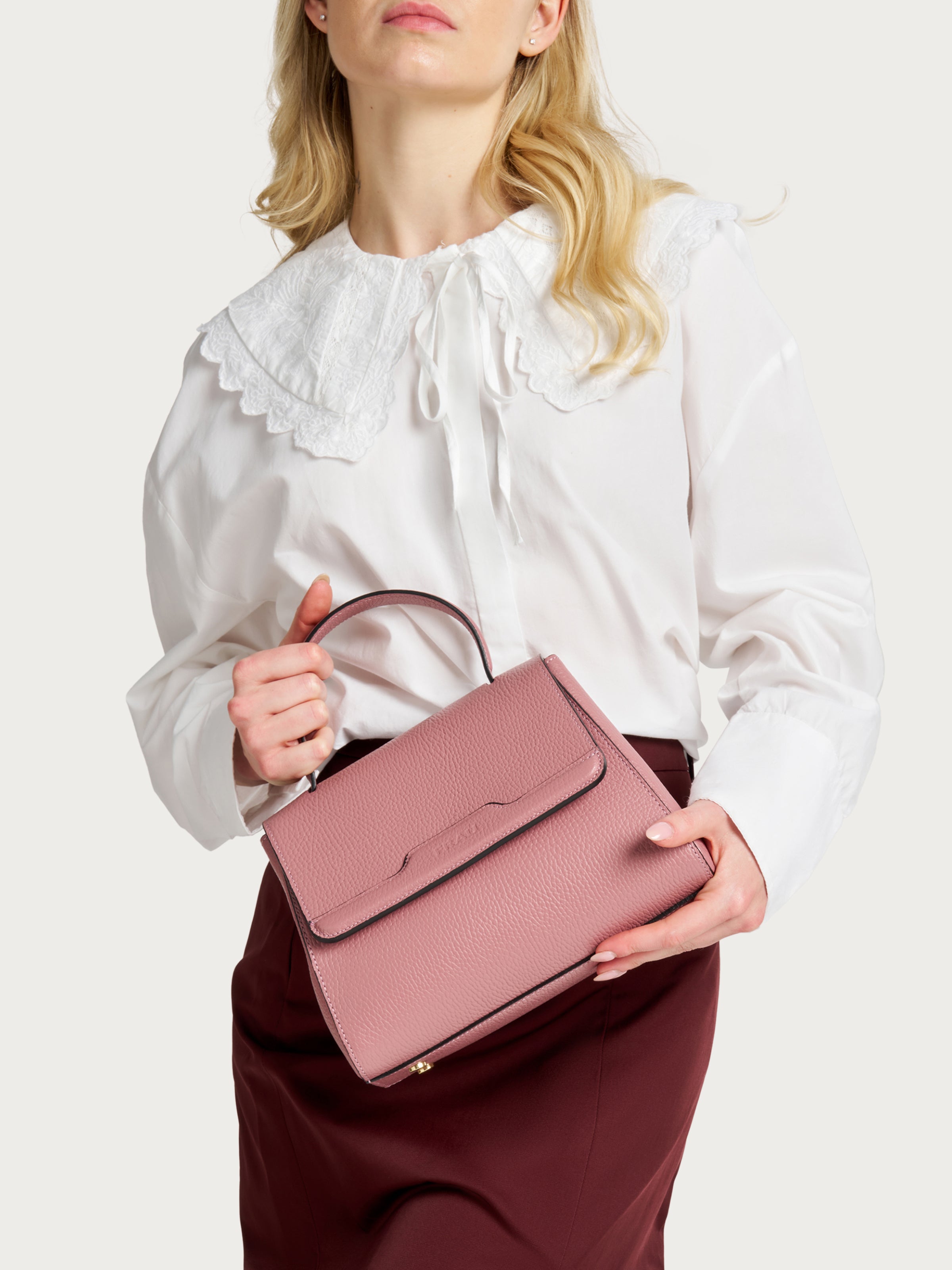 Sophisticated nonchalance is enclosed in this handbag with defined and elegant lines. Perfect for women who love merging formal rigour with a pop of personality, it is the ideal accessory for completing refined looks for the office and after-work drinks.