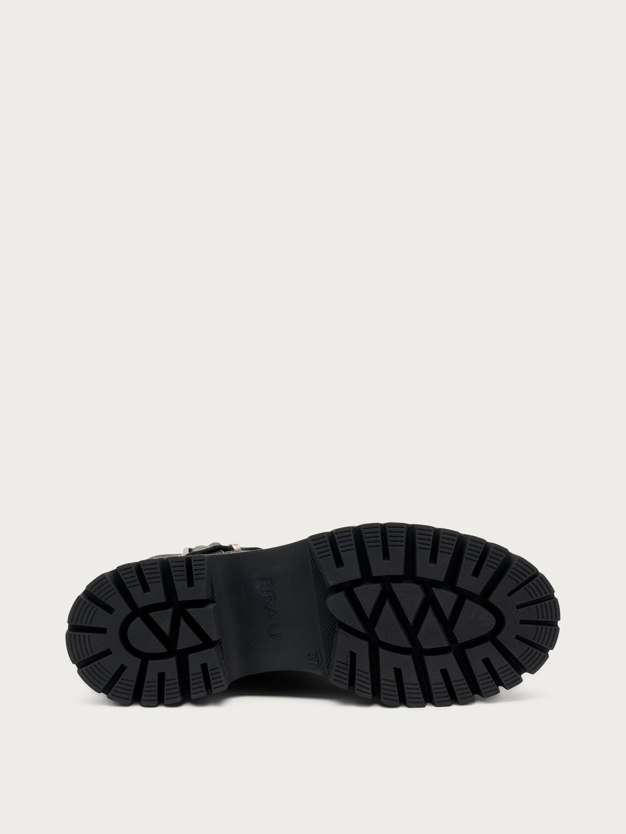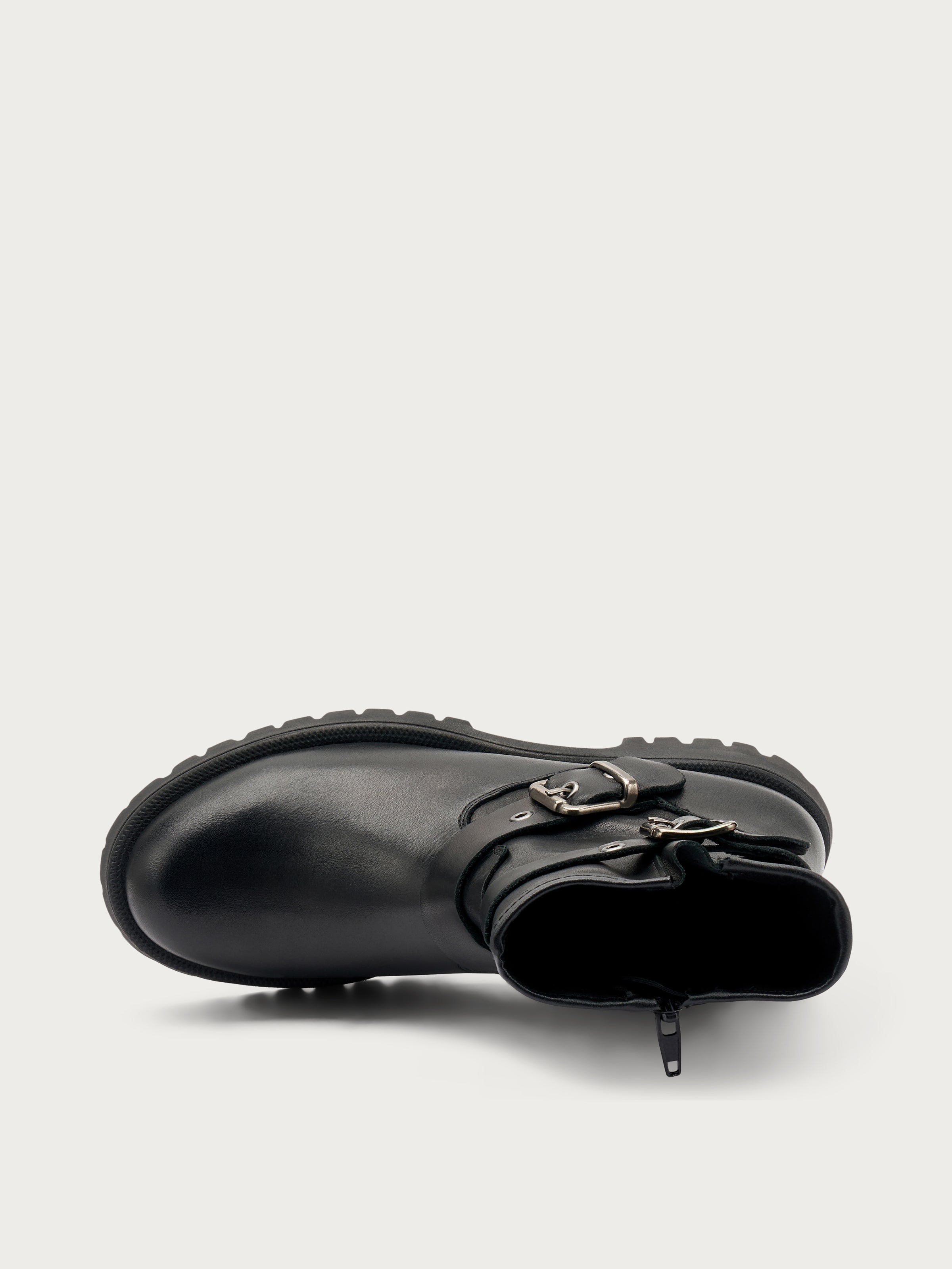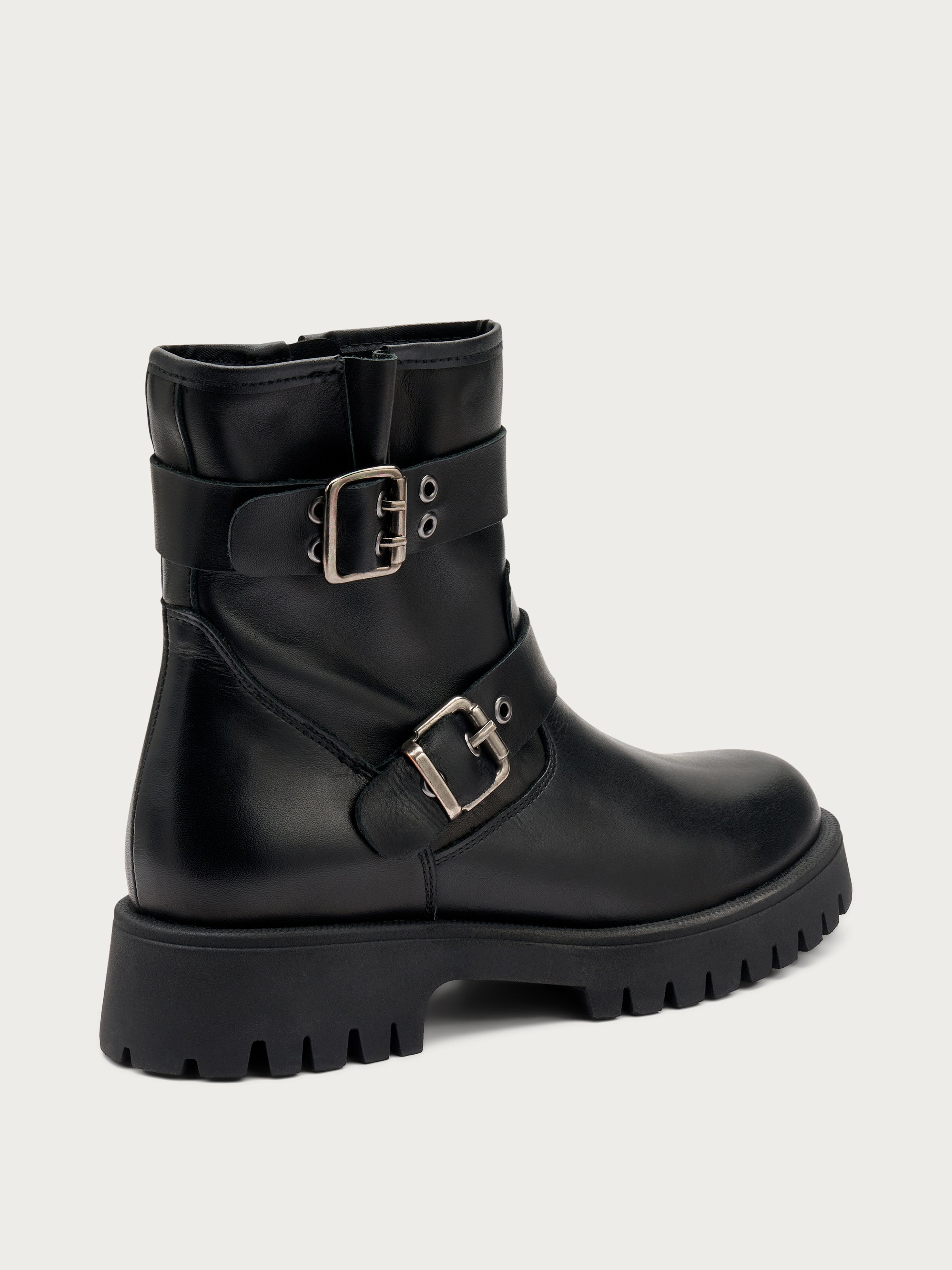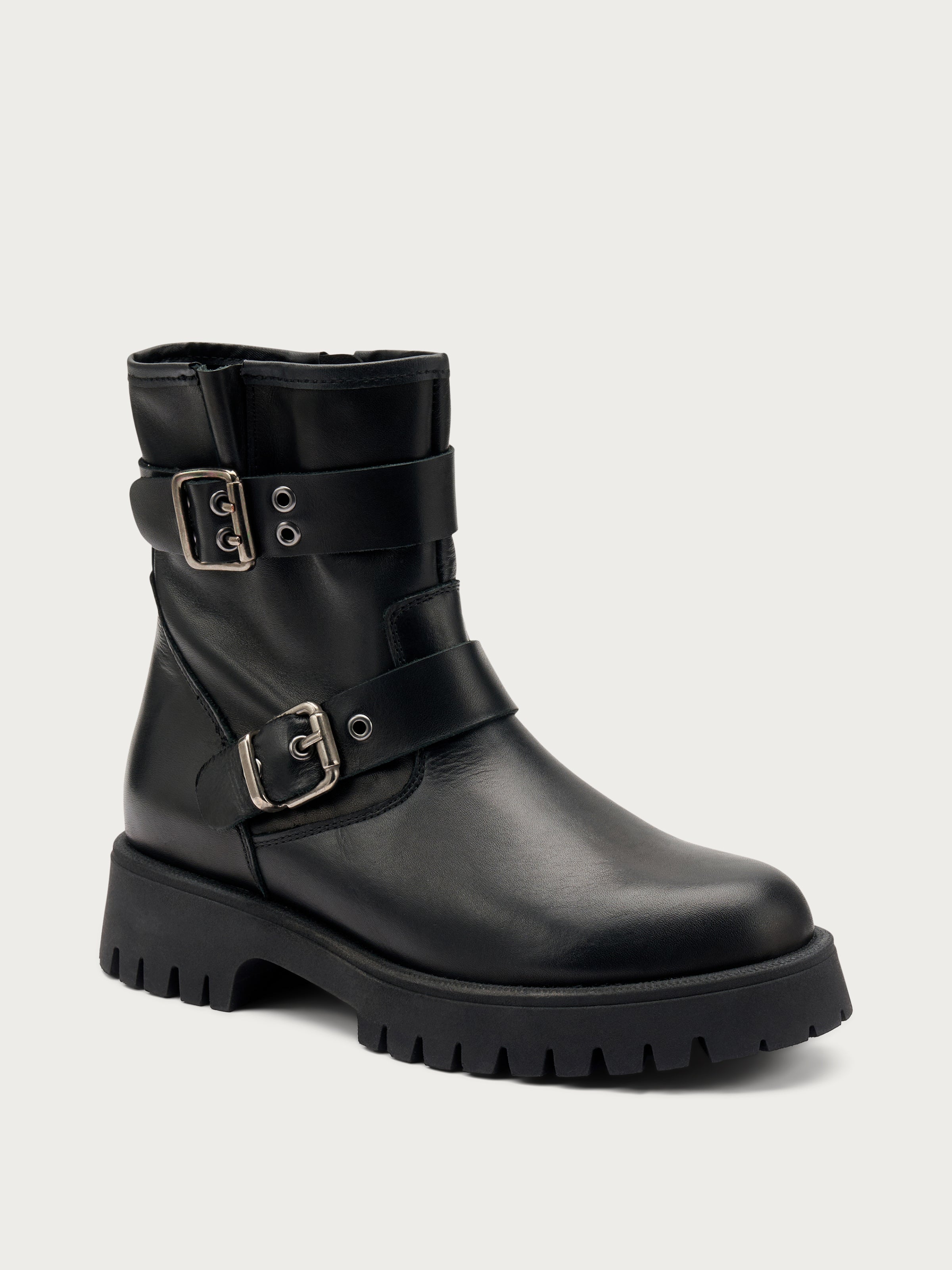 Leather ankle boots with buckles and lug sole - Black | FRAU