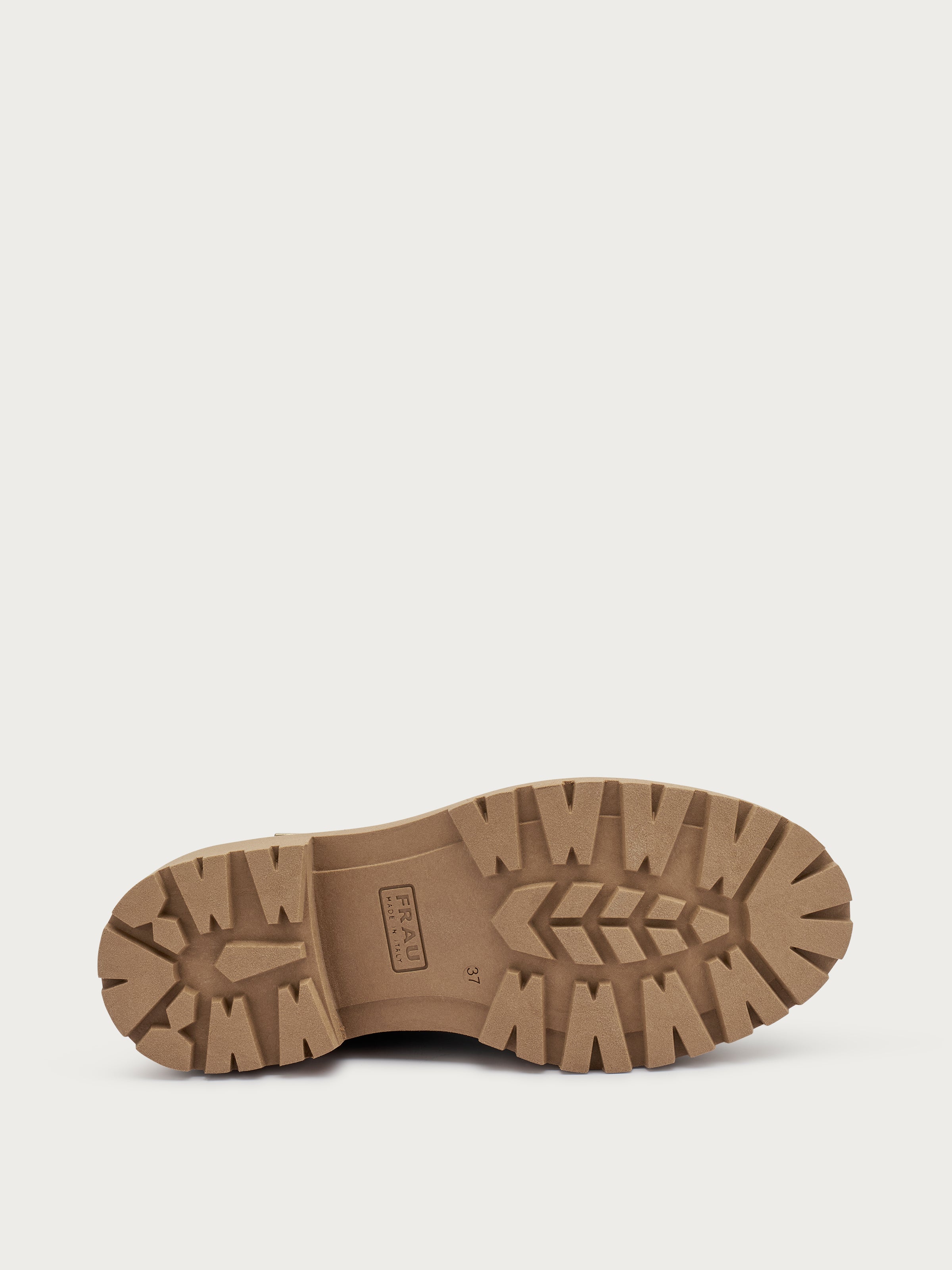 - Soft leather upper with rear pull-tab and tone-on-tone elastic on the sides with burnished metal accessory strap.