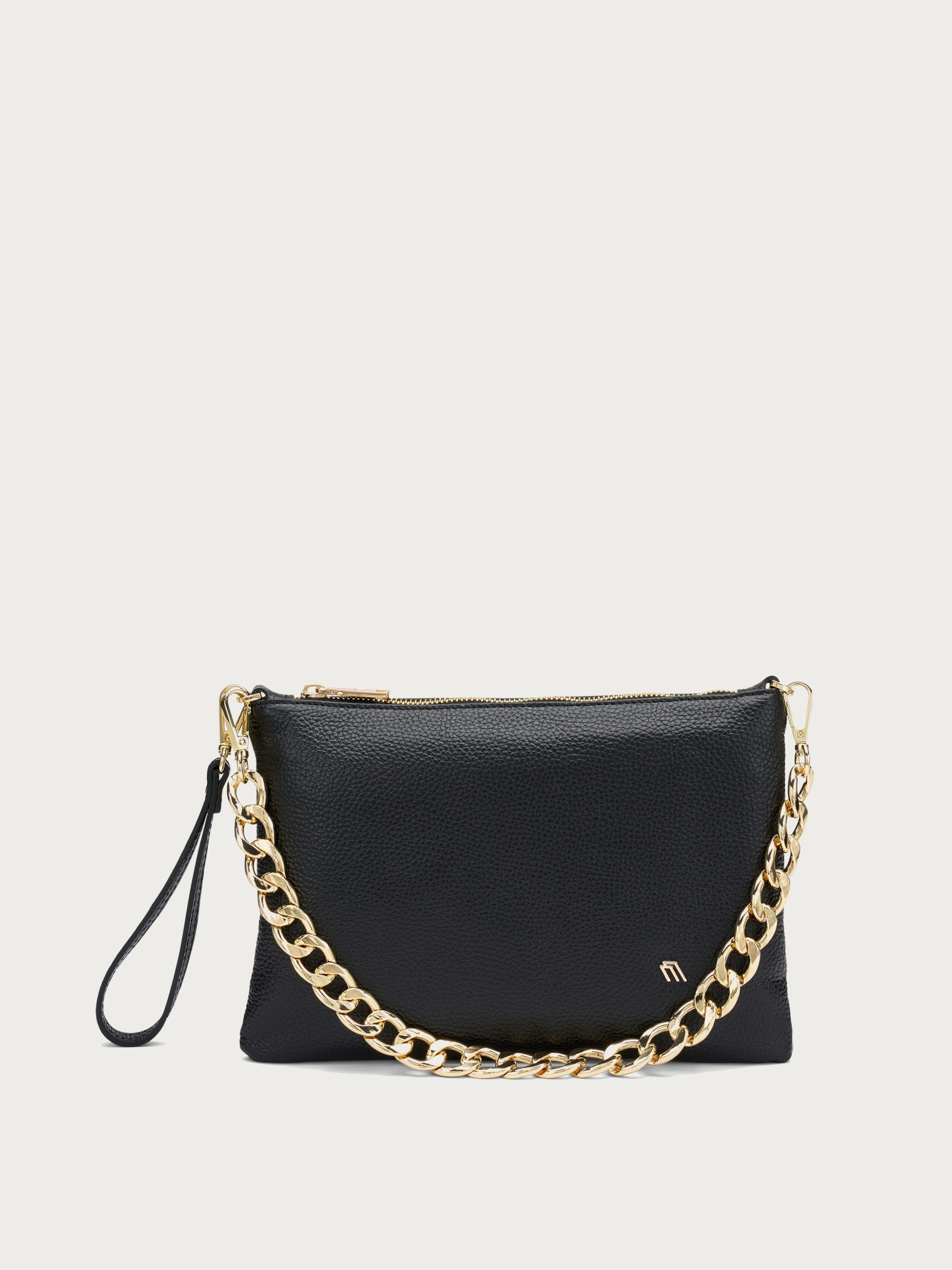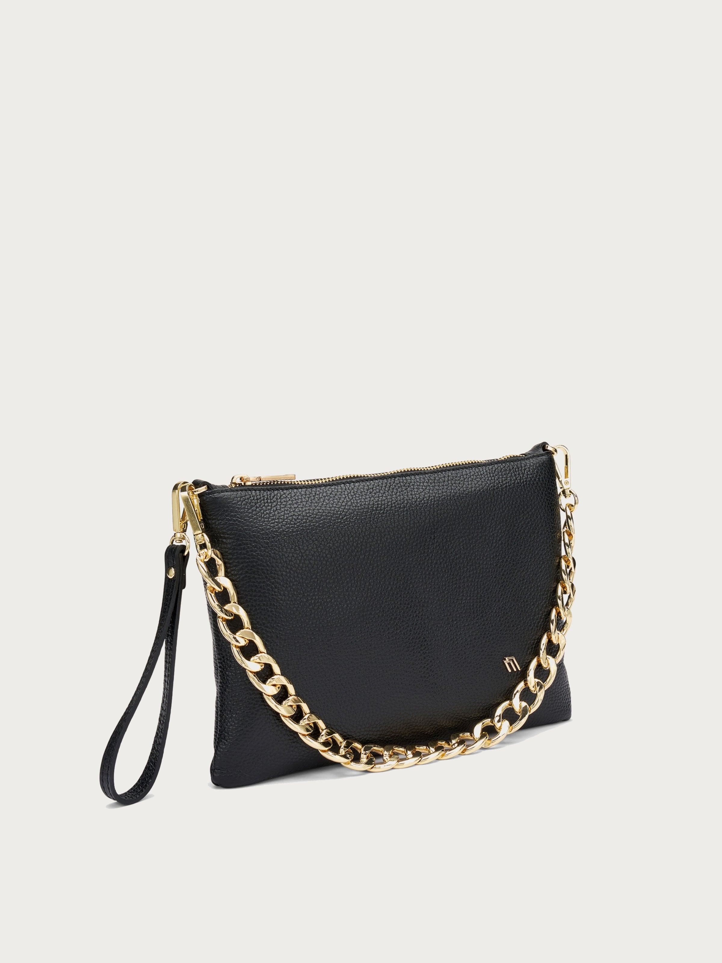 A semi-rigid clutch bag with an elegant chain for special occasions or in everyday life, if you love small and practical bags to carry your essentials with you. Practical zipped pocket on the back