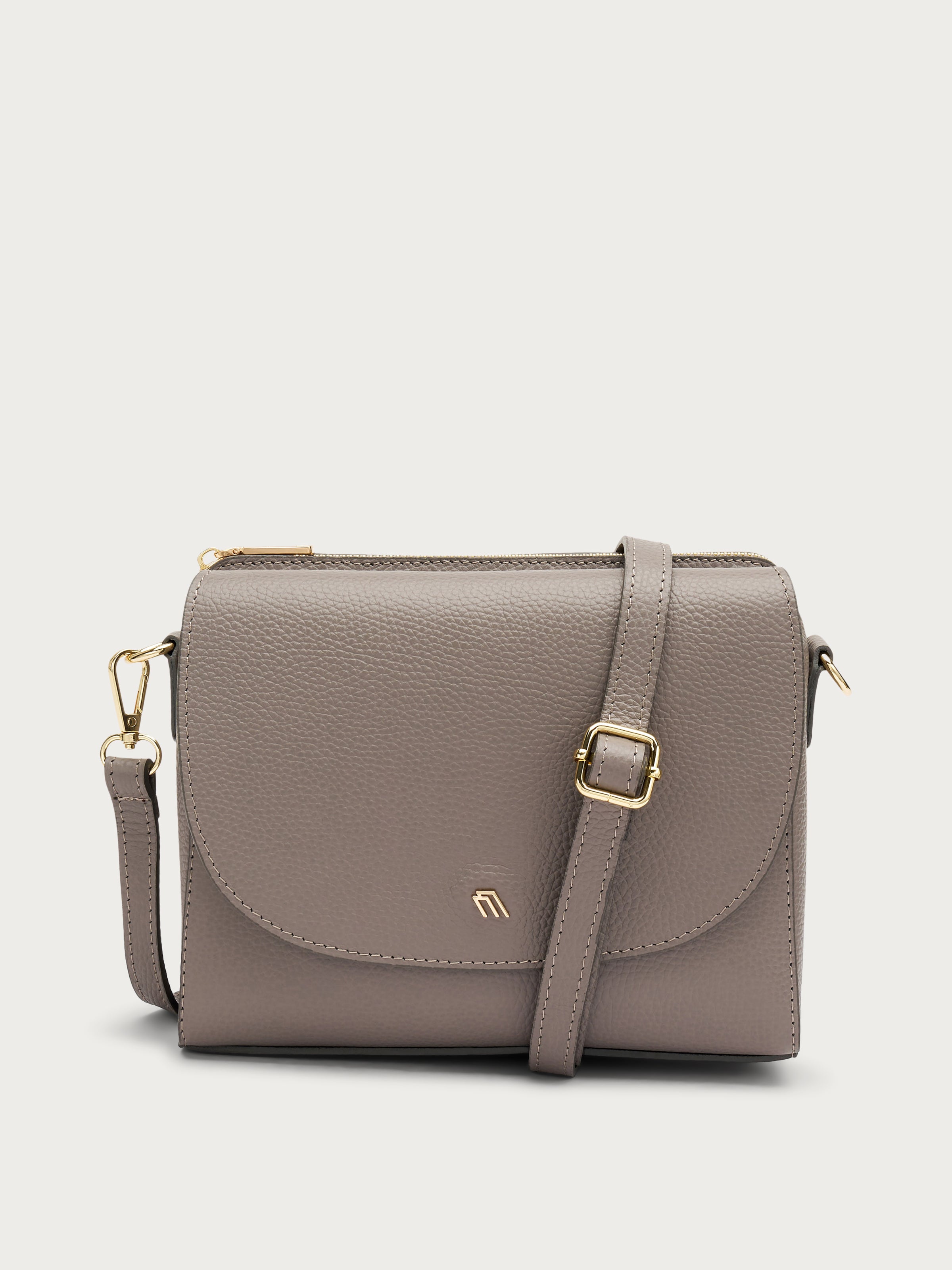 Leather flap bag with animal-print strap - Taupe | FRAU