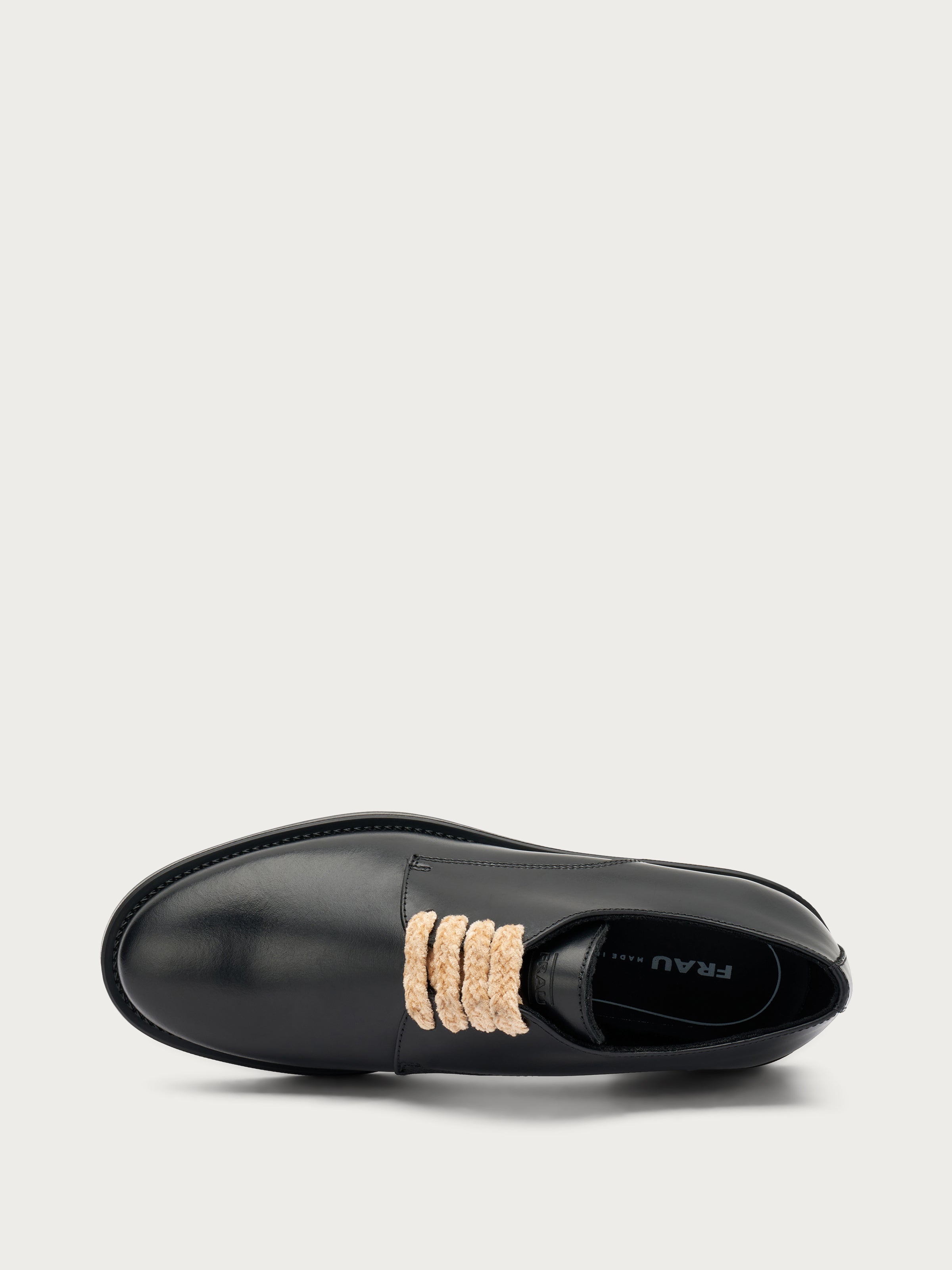 These FRAU lace-ups merge the traditional lines of the classic model with an unexpected touch: the extremely soft and fun chenille laces add personality and a slight pop of colour