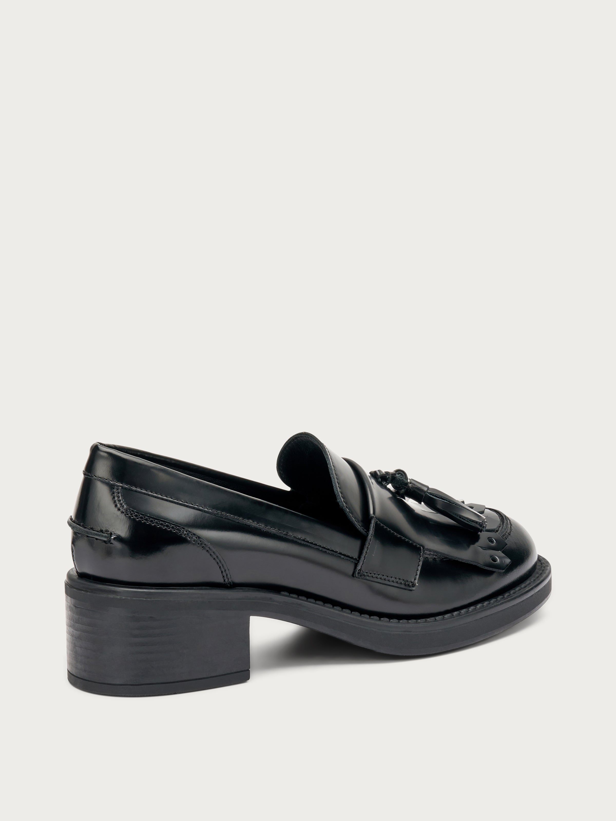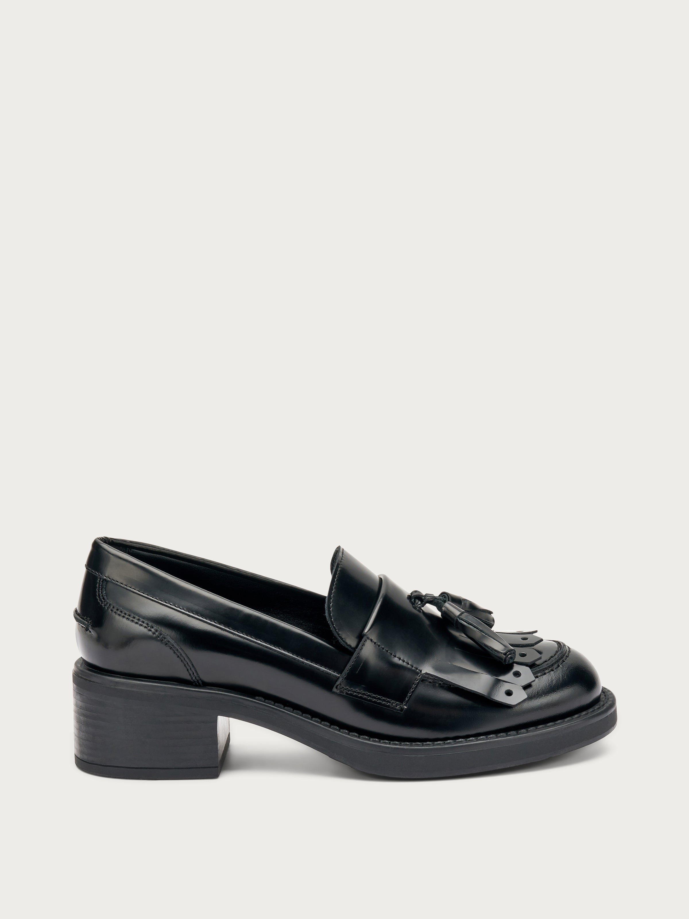 With a plazacore aesthetic, these brushed leather loafers with tassels are a statement of ultra-feminine and preppy-rock style. Nuanced detailing and the bold sole add a bold and comfy edge for wearing them at any time of the day.