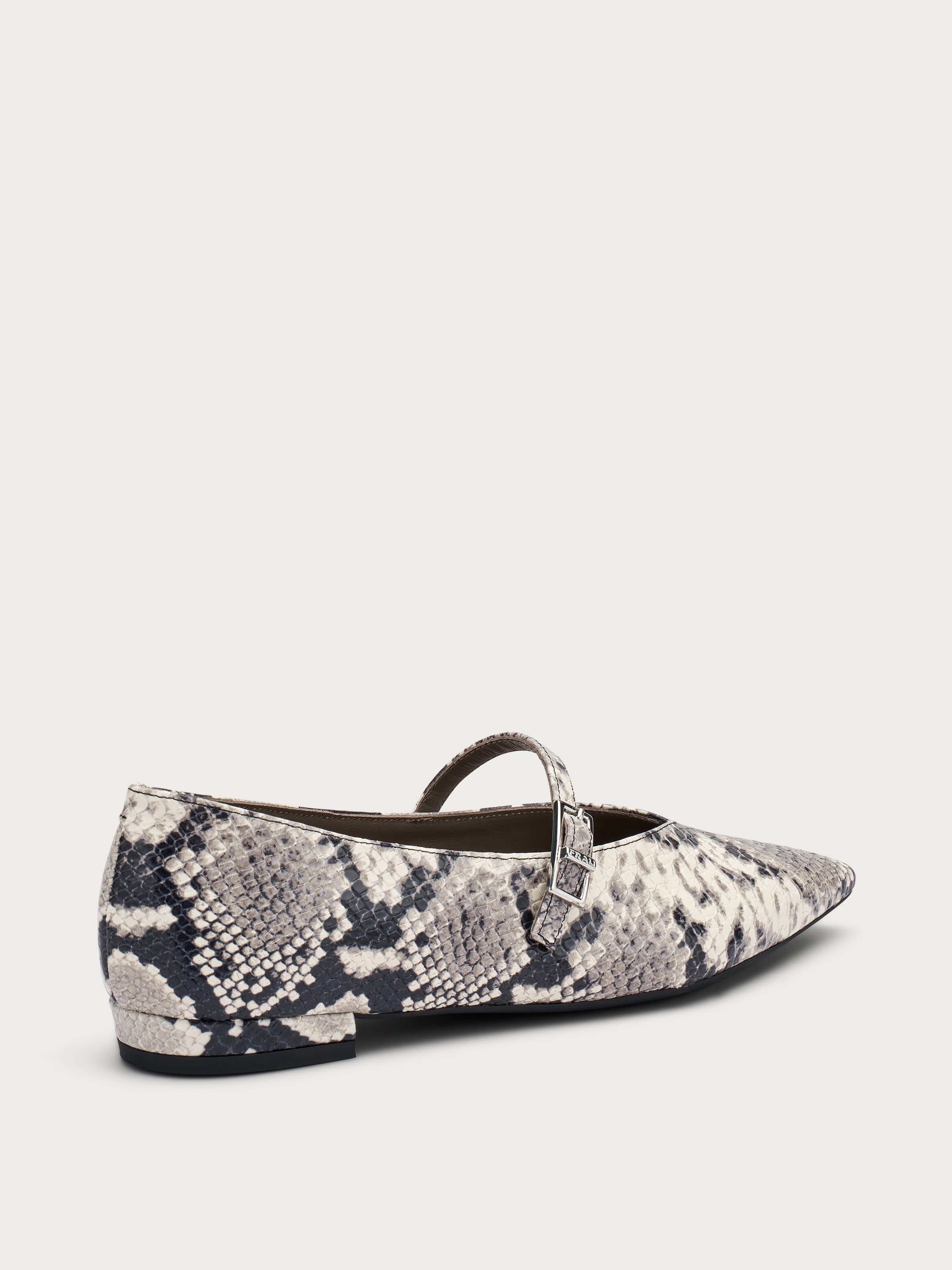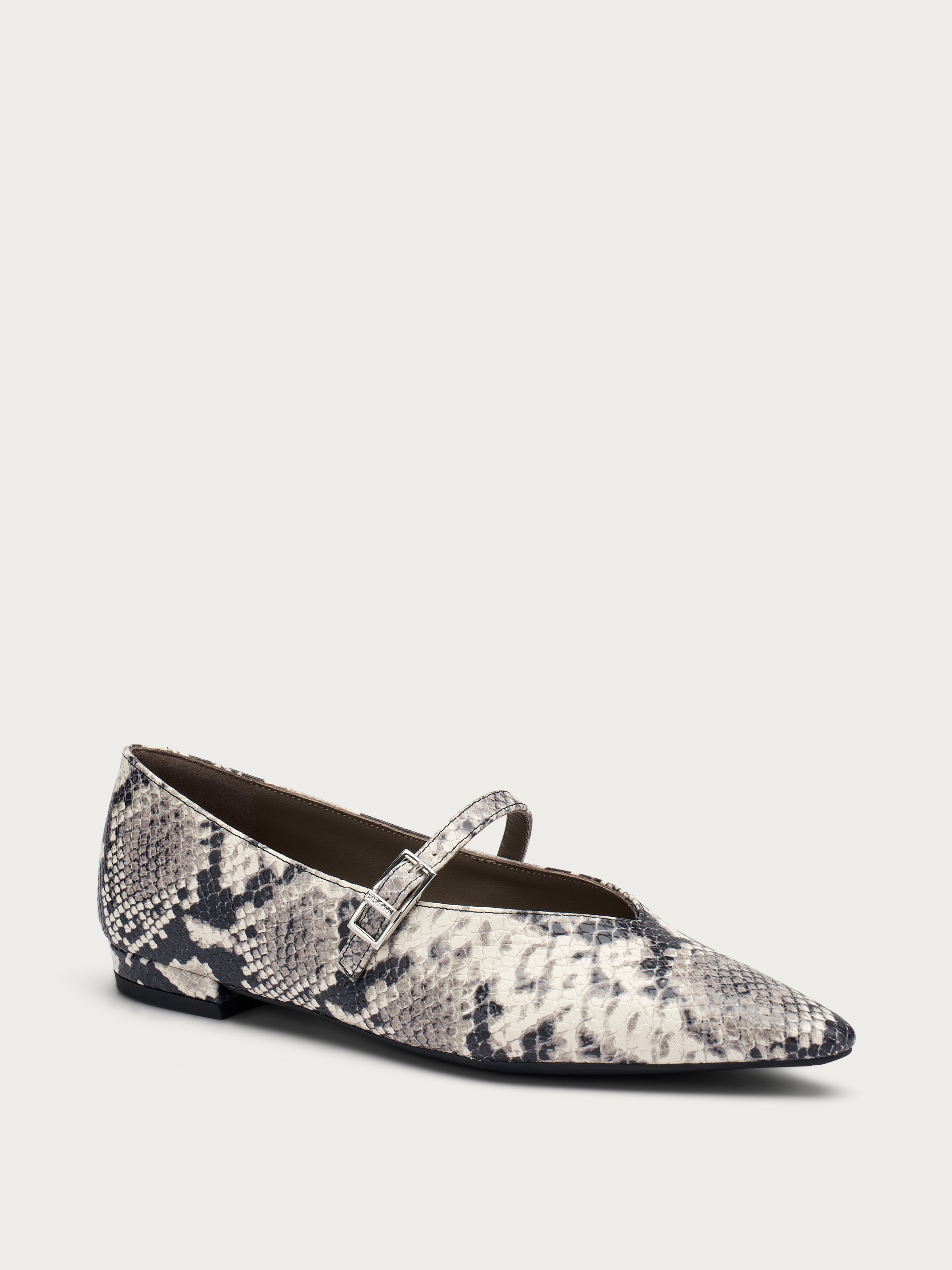 Snake-print leather pointed-toe ballet flats - Rock | FRAU