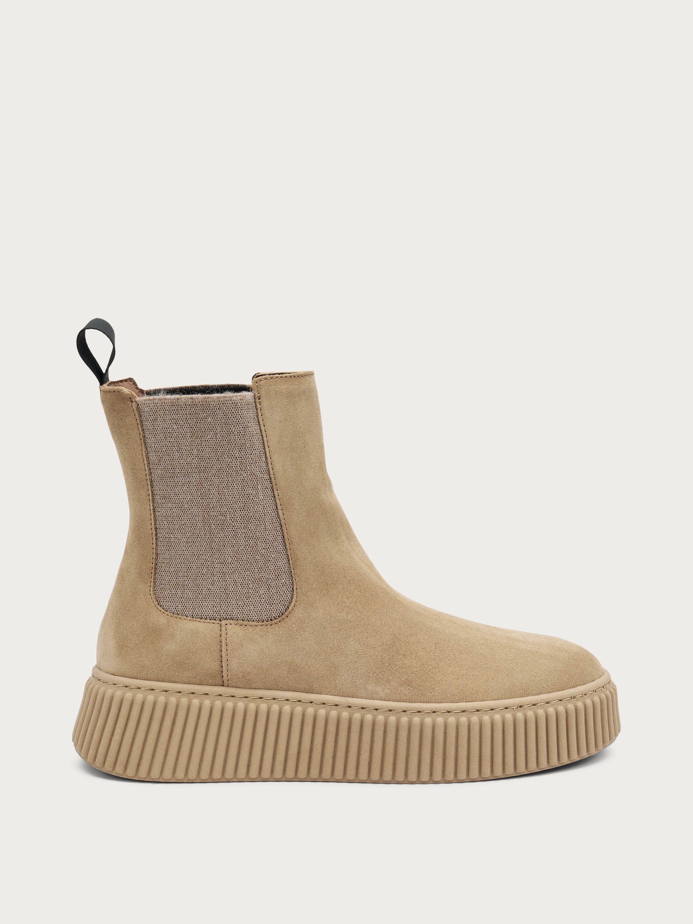 Suede Chelsea boots with grooved sole - Honey | FRAU