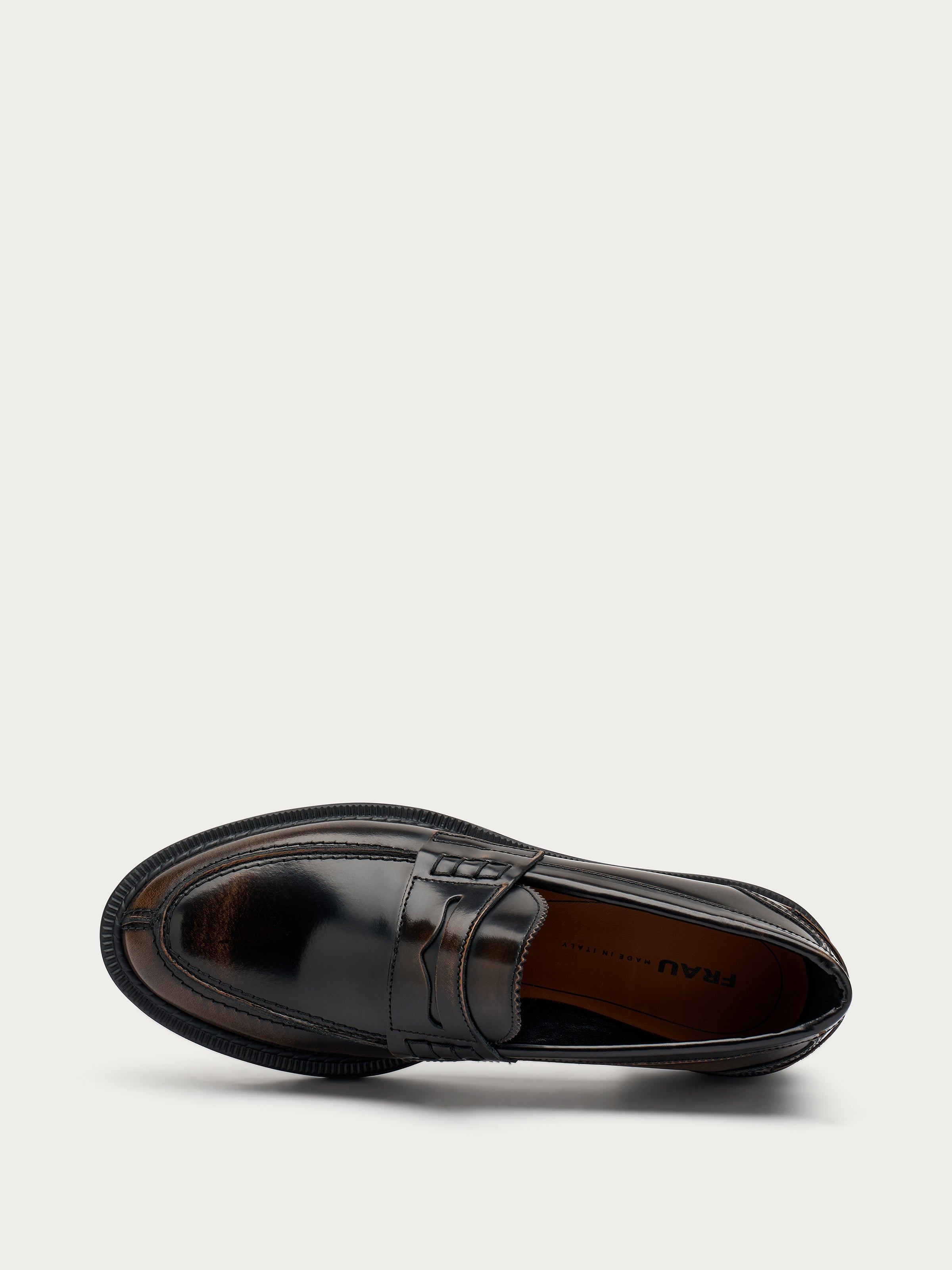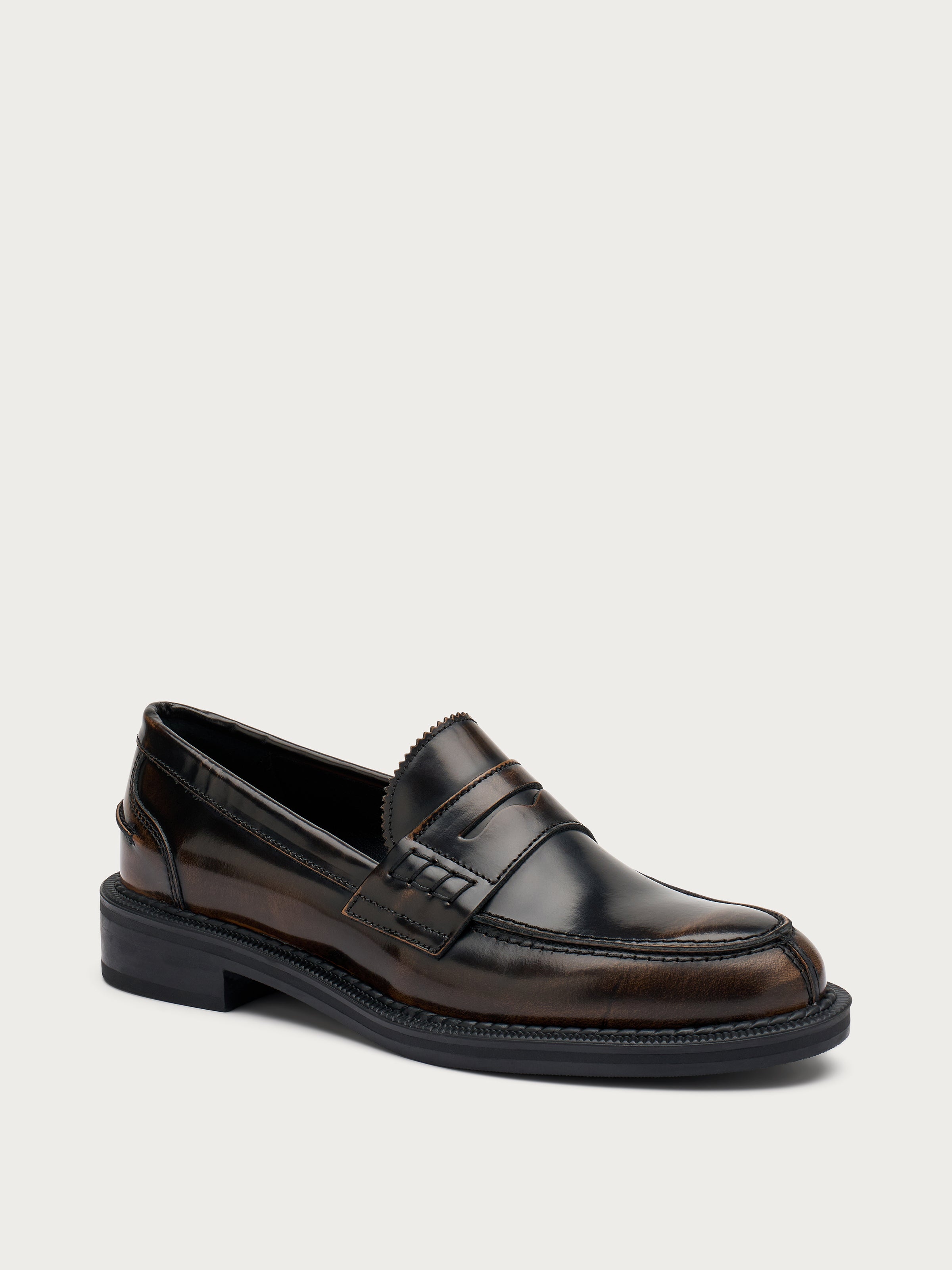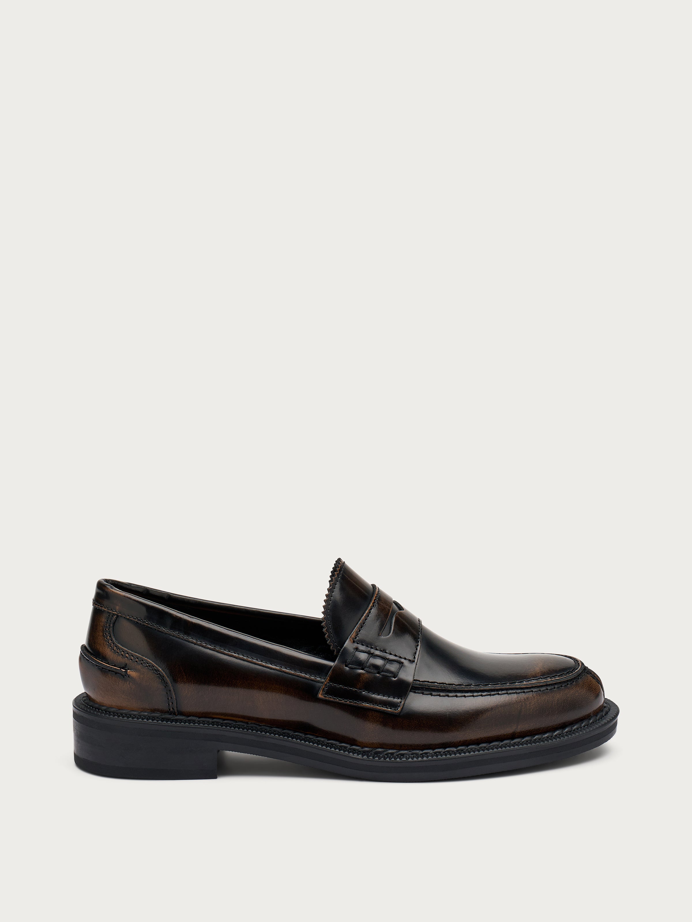 • The hand-crafted smoky finish adds intensity to the brushed leather upper. Every pair is unique.