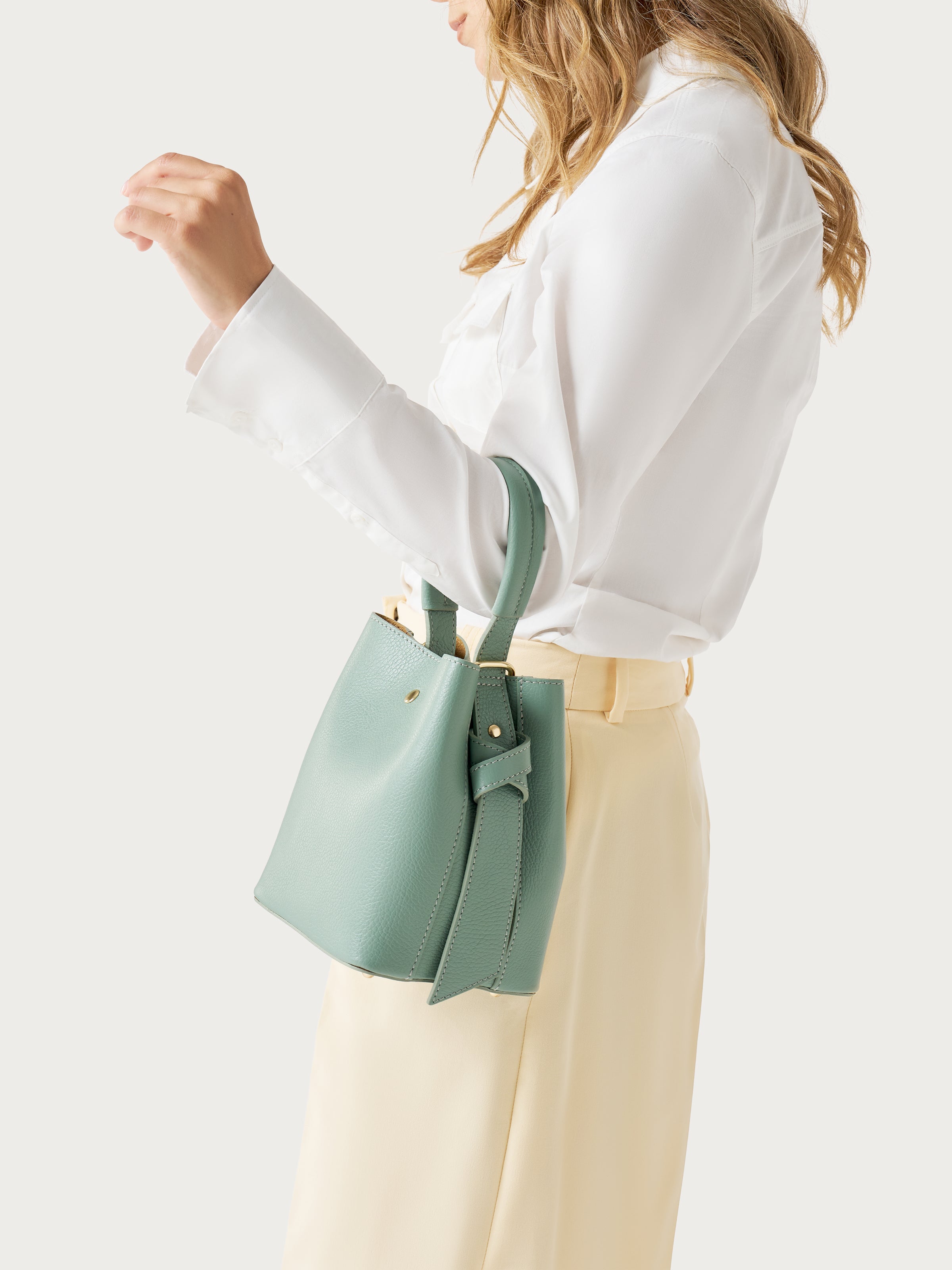 - Realizzata in pelle bottlata, struttura rigida