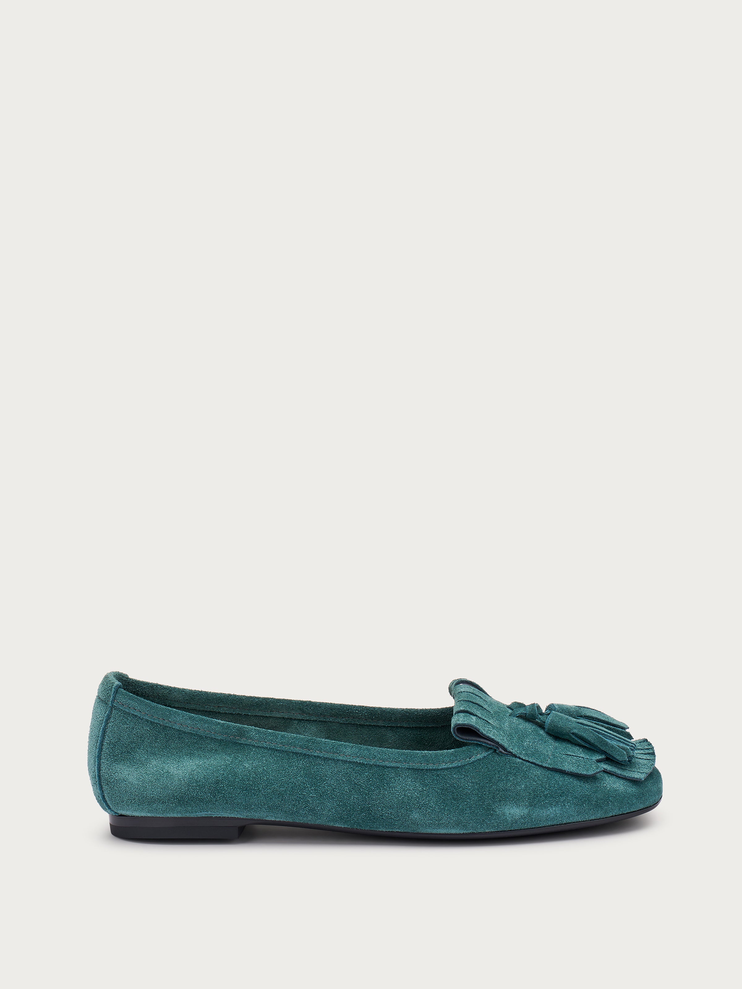 The perfect hybrid between a loafer and a ballet flat, made from soft suede and embellished with boho-chic fringing and tassels. A model with authentic character, designed for people who love spontaneous and personal elegance.Ideal for completing radical chic-inspired looks, it merges comfort, style and originality in a unique and contemporary design.