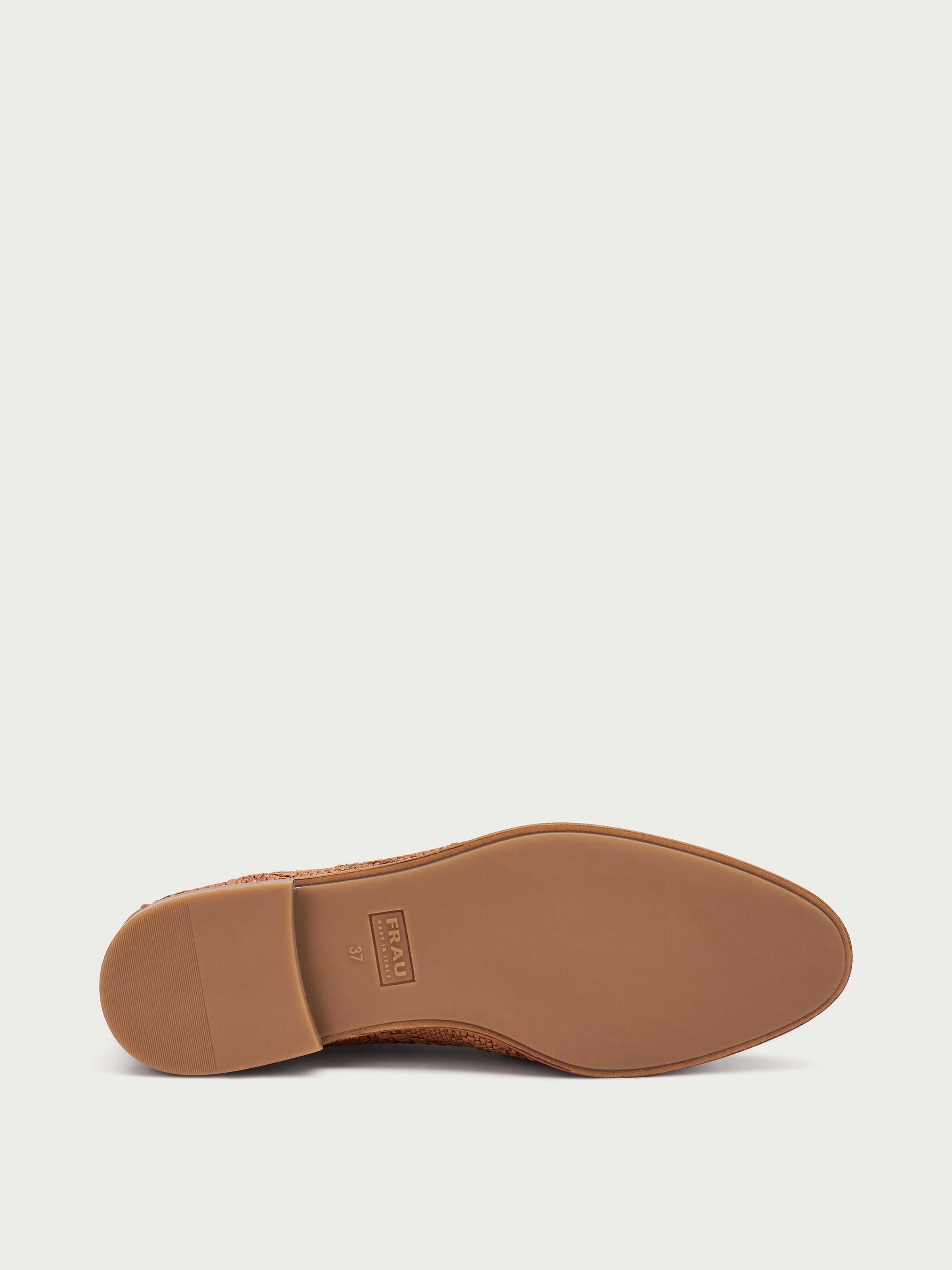 - Composizione: Tomaia: 90% rafia, 10% pelle bovina; Fodera: 50% pelle ovina, 50% tessuto; Sottopiede: 100% pelle ovina; TPUcuoio