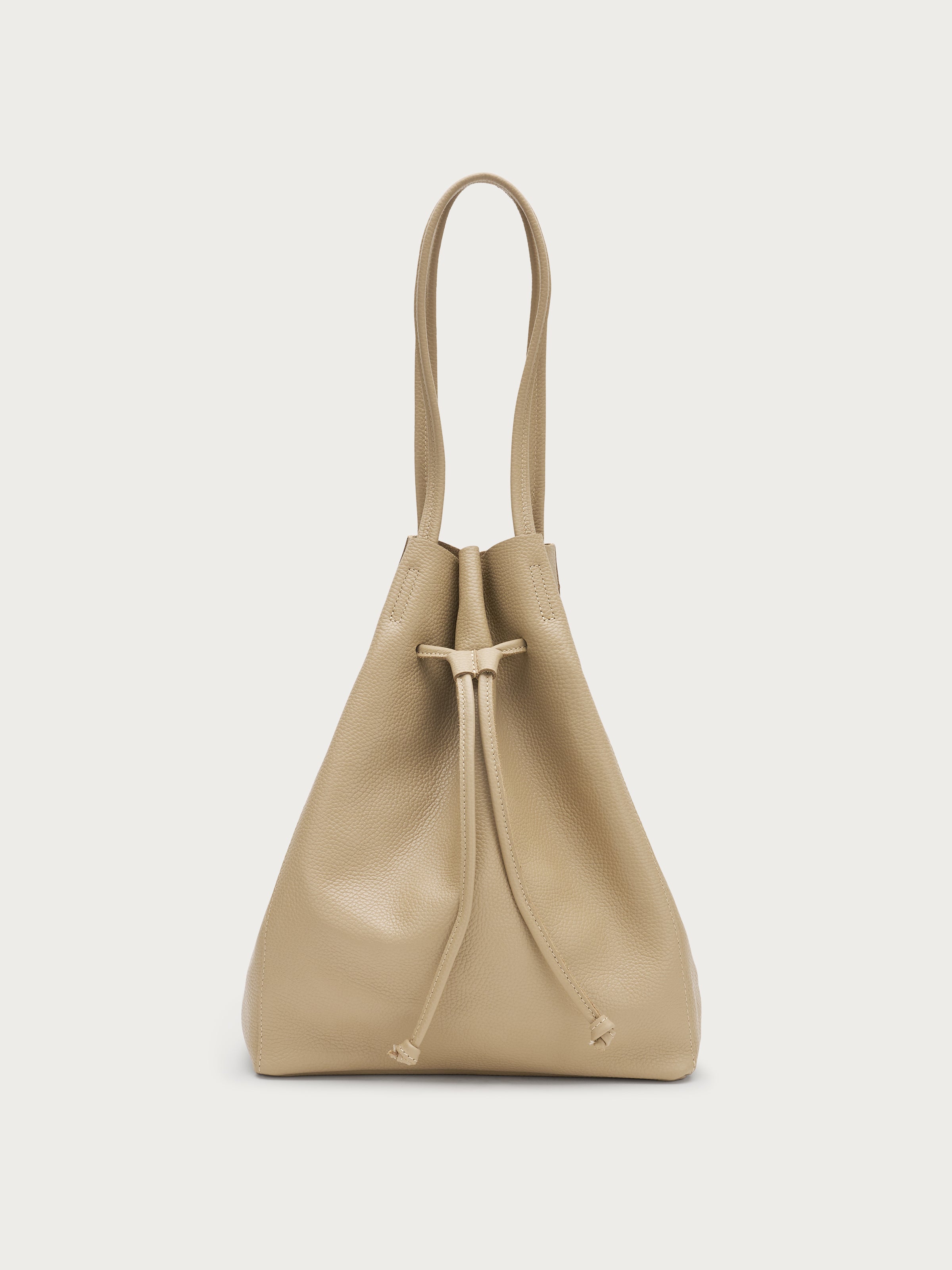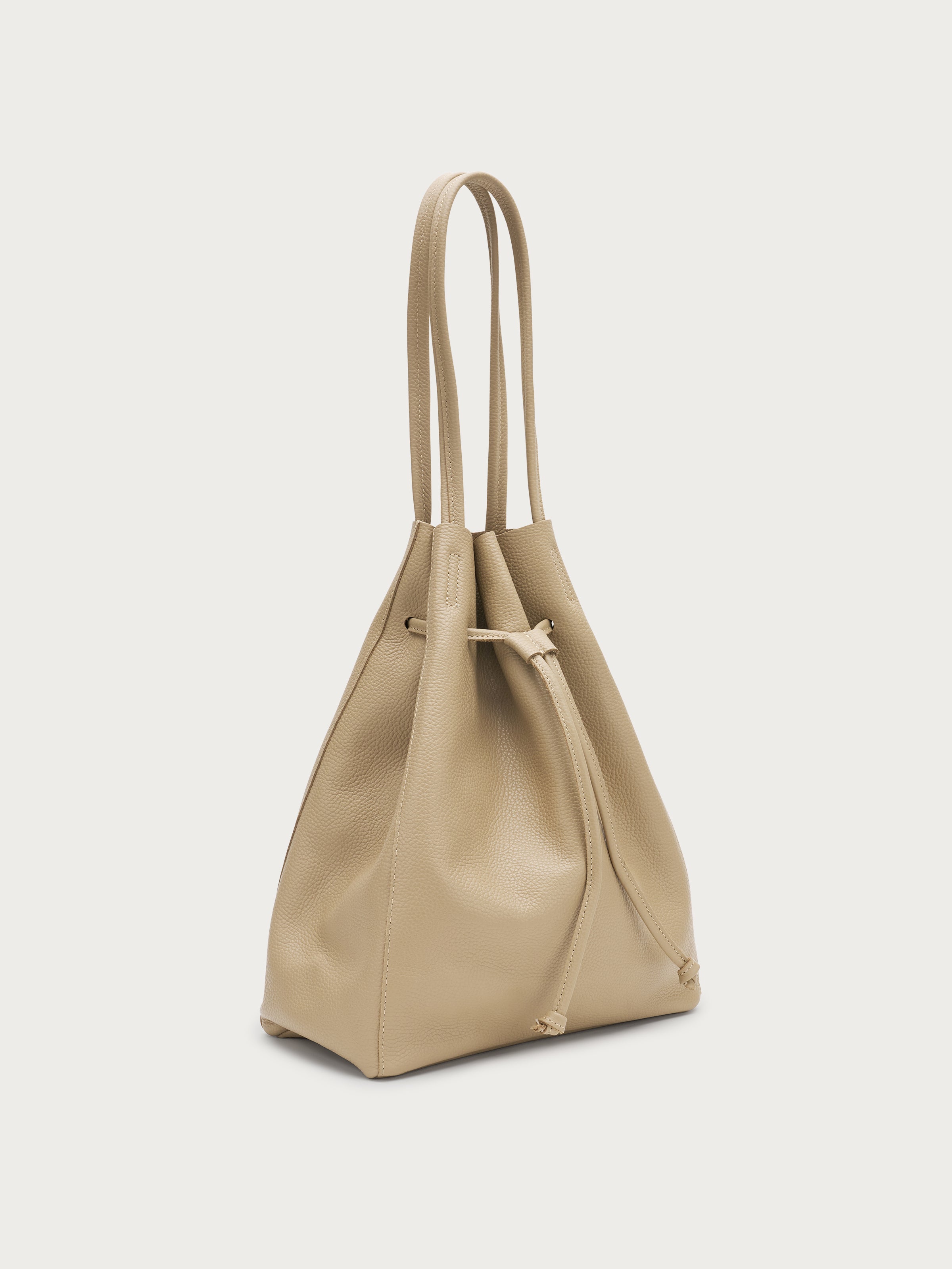 - Chiusura a coulisse con cordino in pelle