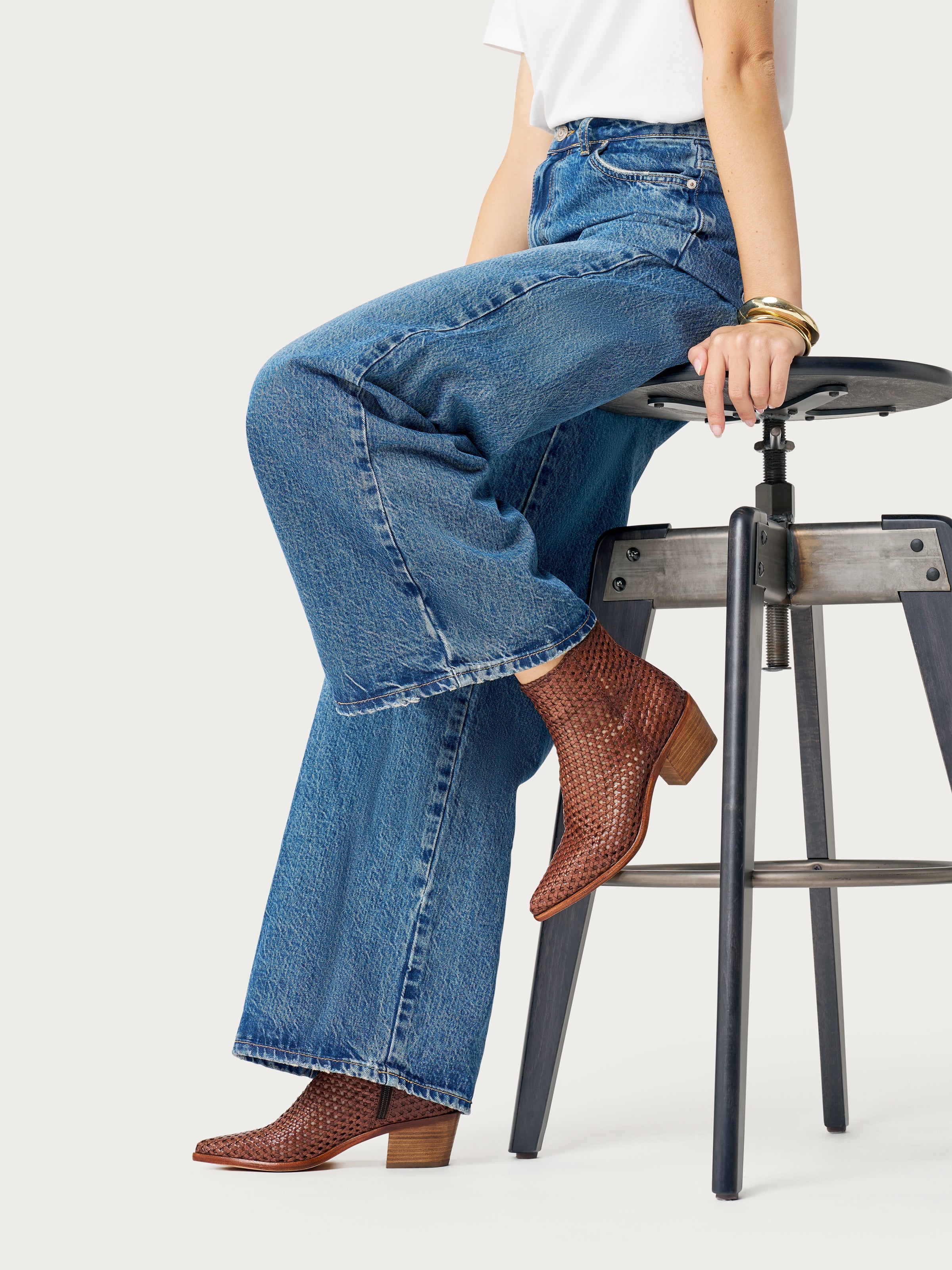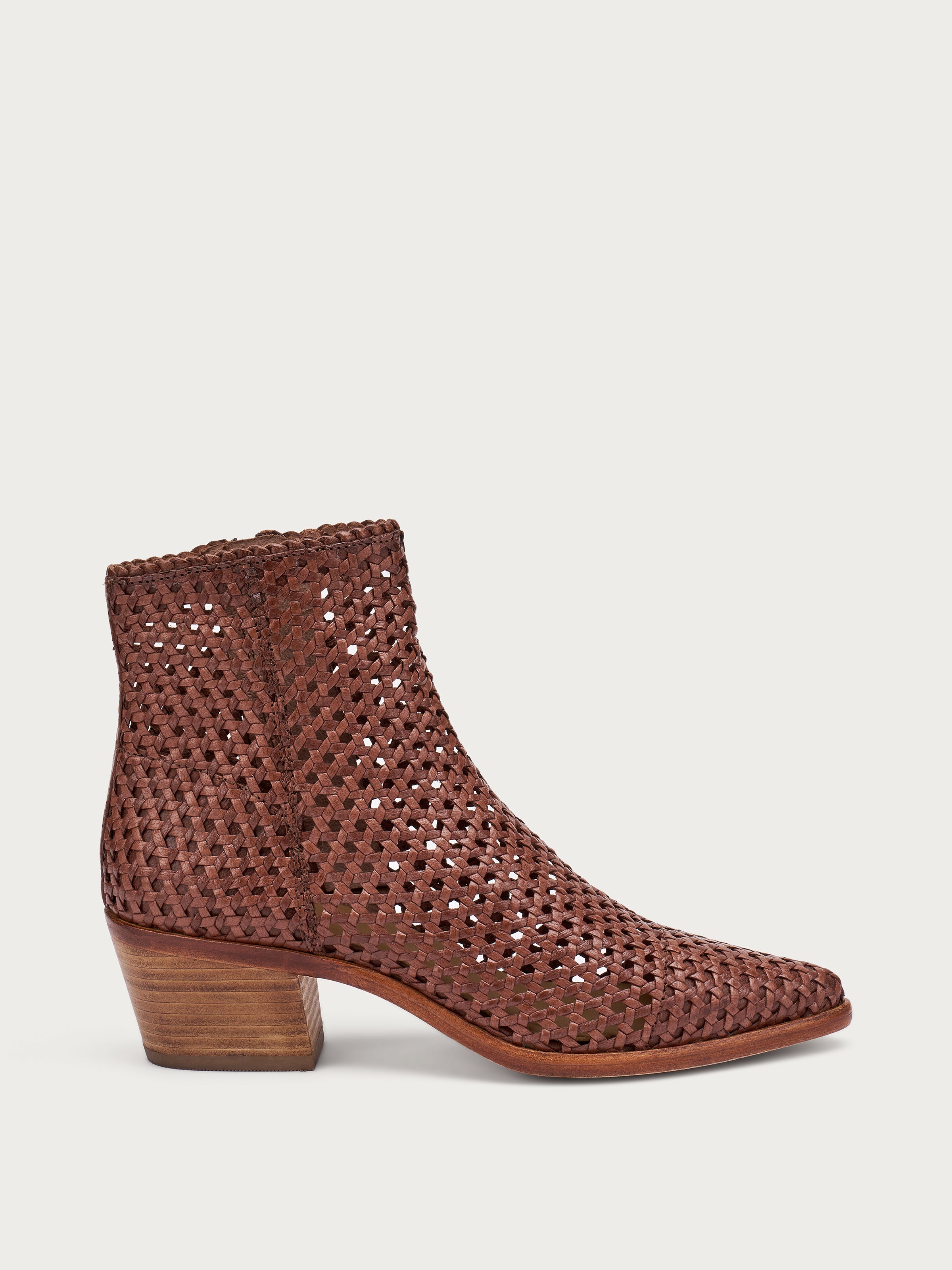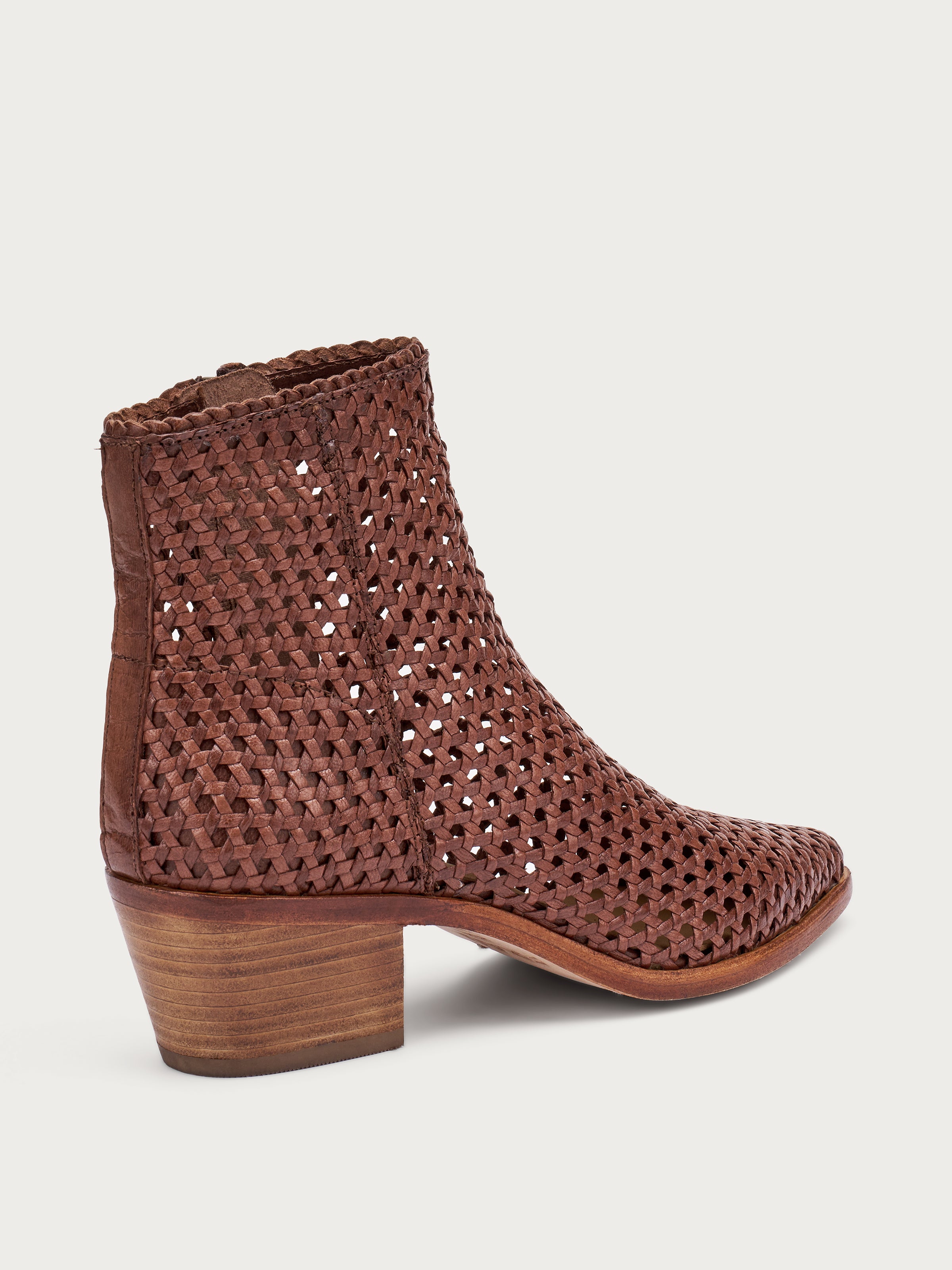 Stivaletto texano in pelle con tomaia intrecciata che gioca con effetti vedo‑non‑vedo. Linee decise che esprimono carattere e comfort, perfetto per outfit urban‑chic, look boho o per dare personalità a jeans e vestiti estivi. Un must-have per l'estate