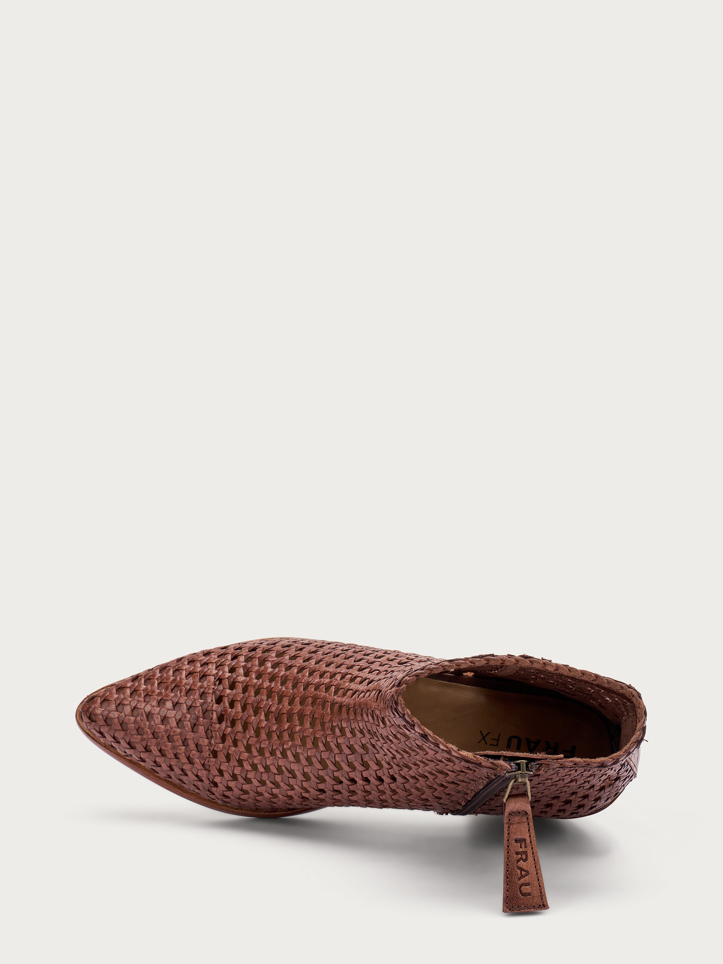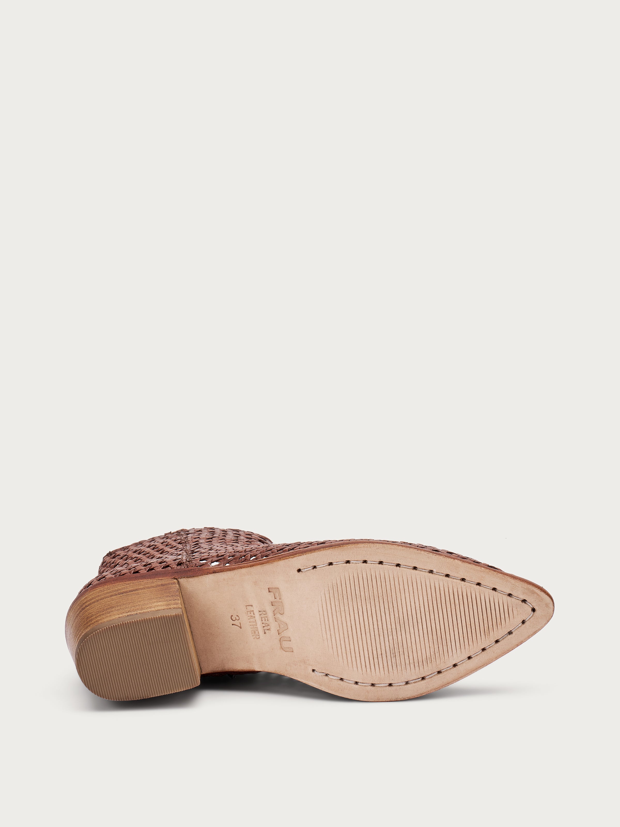 • Tomaia in pelle intrecciata a mano